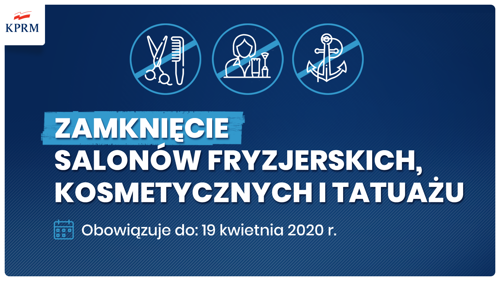 Ograniczenie dotyczy: zamknięcia wszystkich zakładów fryzjerskich, kosmetycznych, salonów tatuażu i piercingu.