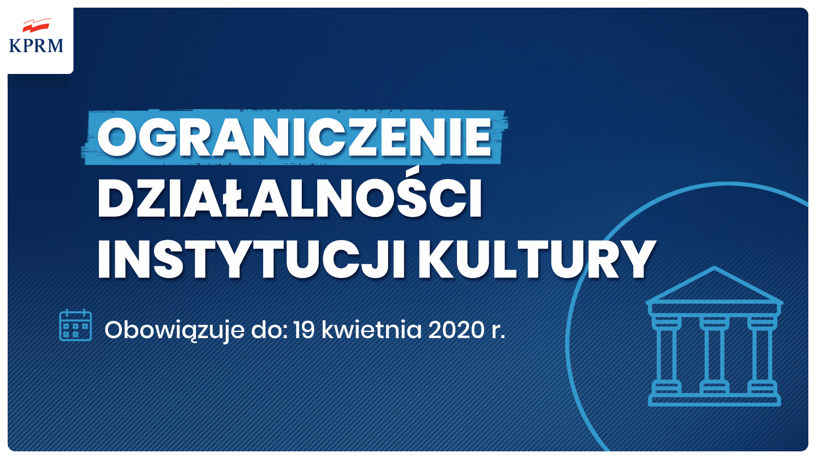 Zalecenia: Wszystkie instytucje kultury pozostają zamknięte. Są to m.in. muza, galerie sztuki, teatry, filharmonie, opery, kina, kluby filmowe, biblioteki, archiwa oraz stała działalność związana z kulturą.