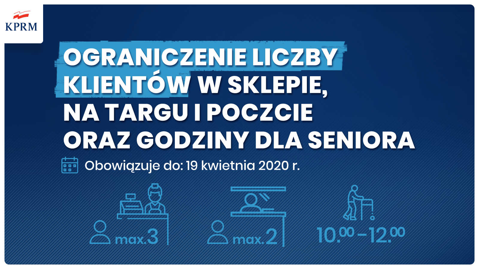 Ograniczenie dotyczy: liczby klientów przebywających w jednym czasie na terenie sklepu, na targu i poczcie