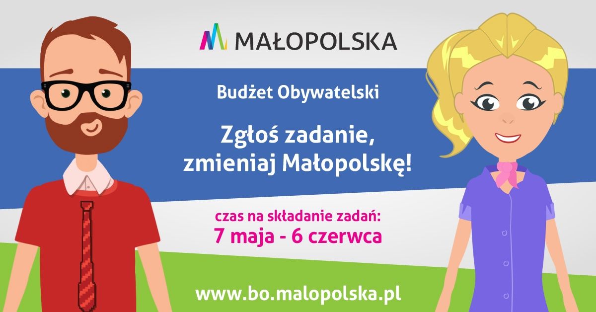 Trzecia edycja Budżetu Obywatelskiego Województwa Małopolskiego wystartowała pełną parą. Do 24 maja trwają w warsztaty z pisania zadań do BO, a już od dziś do 6 czerwca, składać można rzeczywiste projekty, które wkrótce odmienią nasze najbliższe otoczenie.
