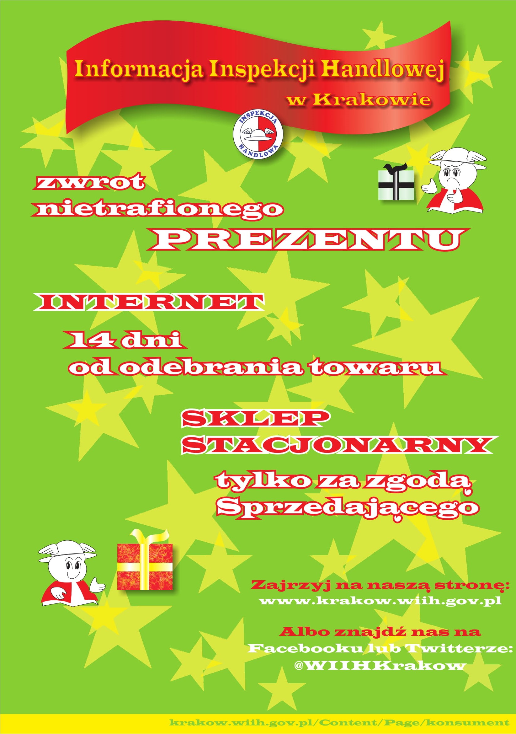 Komunikat prasowy Inspekcji Handlowej w Krakowie w sprawie skierowanej do Konsumentów akcji informacyjno-edukacyjnej, dotyczącej prawa do zwrotu pełnowartościowego towaru.