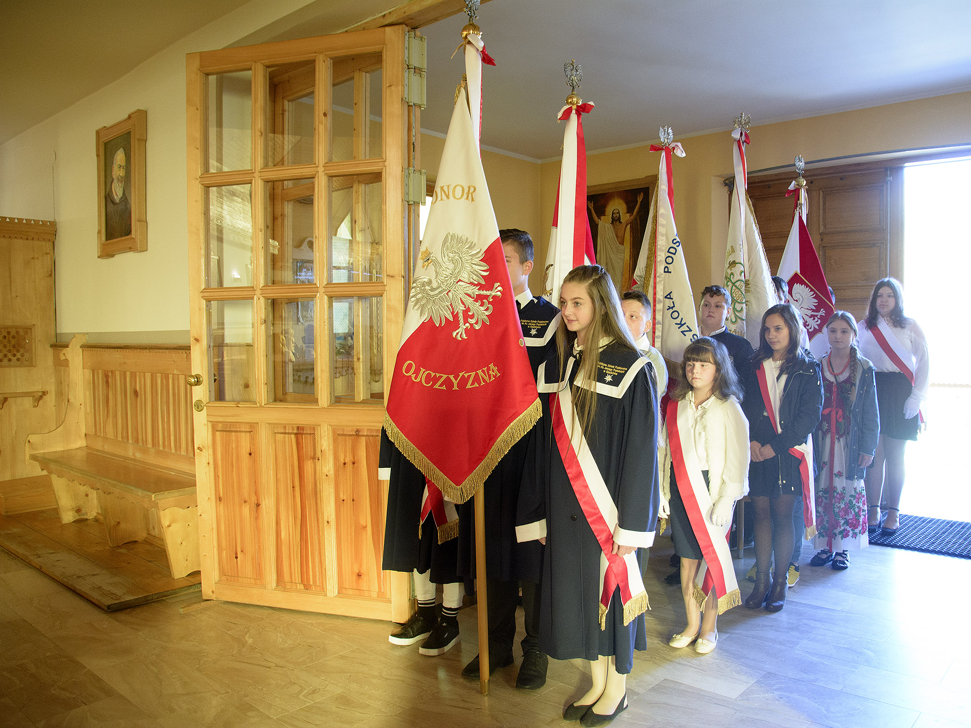 Święto Patrona to szczególny dzień w życiu szkolnej społeczności. Jego wyjątkowy charakter, podkreślili swoją obecnością przedstawiciele władz Gminy Poronin – pani Wójt Anita Żegleń , Przewodniczący Rady pan Adam Pawlikowski, Sekretarz Gminy pani Maria Budz oraz Dyrektor Centrum Usług Wspólnych pani Beata Chałupka. Życzyli oni Dyrekcji, Gronu Pedagogicznemu i Rodzicom, aby duch Patrona wpisał się w program wychowawczy Szkoły. Uczniom zaś, aby wartości, którym był wierny ks. Popiełuszko pozostały dla nich drogowskazem.