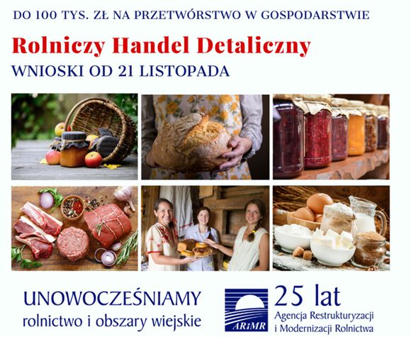 Na prośbę Dyrektora Małopolskiego Oddziału Regionalnego Agencji Restrukturyzacji i Modernizacji Rolnictwa zamieszczamy Państwu komunikat prasowy dotyczący naboru wniosków w ramach działania – Rolniczy Handel Detaliczny.