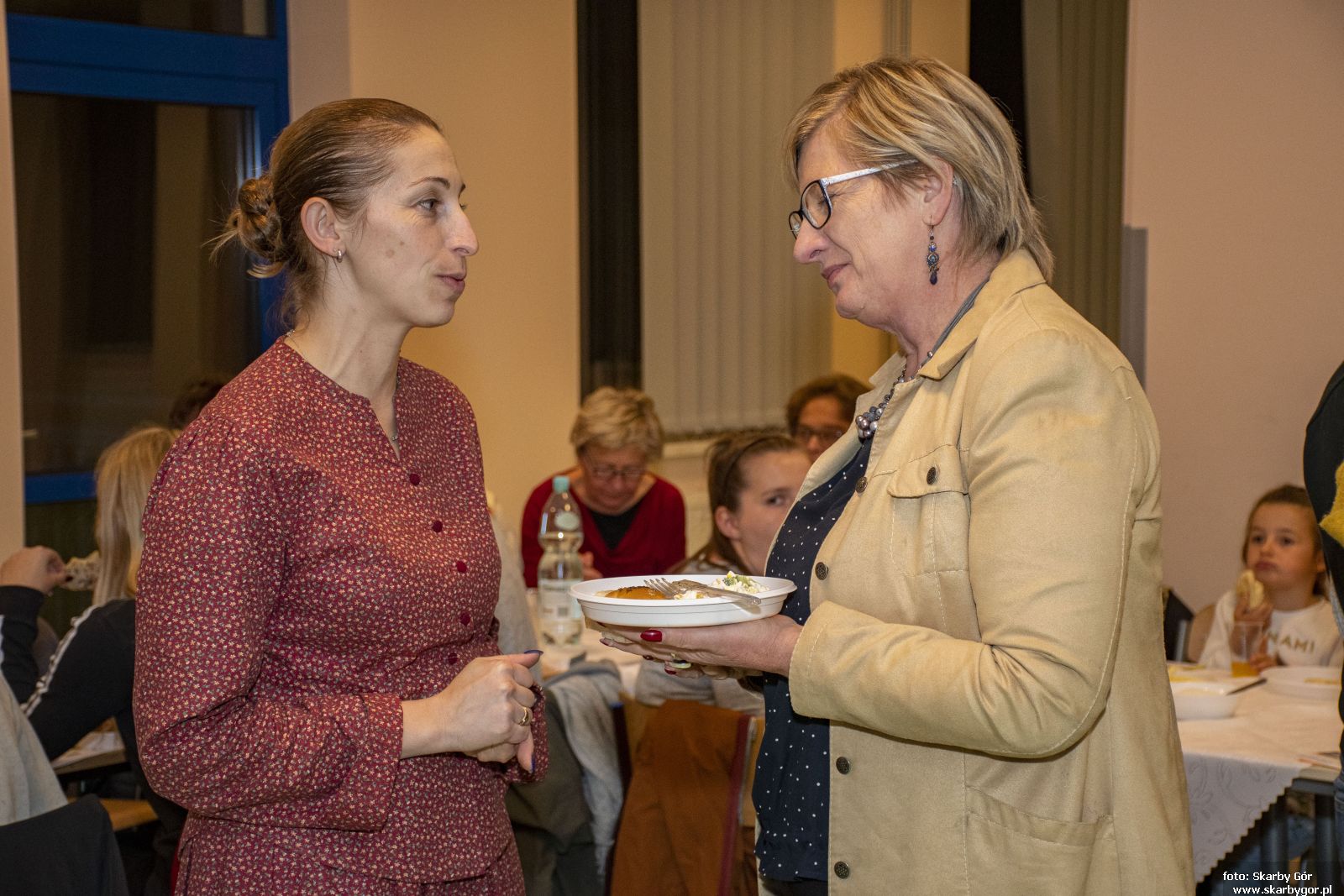 Poczęstunek na zakończenie został przygotowany przez uczestników. Wzięli oni dodatkowo udział w krótkim konkursie wiedzy o potrawach przygotowywanych na warsztatach. Do Jury zaprosiliśmy Panie z KGW w Zębie. Każdy uczestnik warsztatów otrzymał symboliczny dyplom potwierdzający udział w szkoleniu.