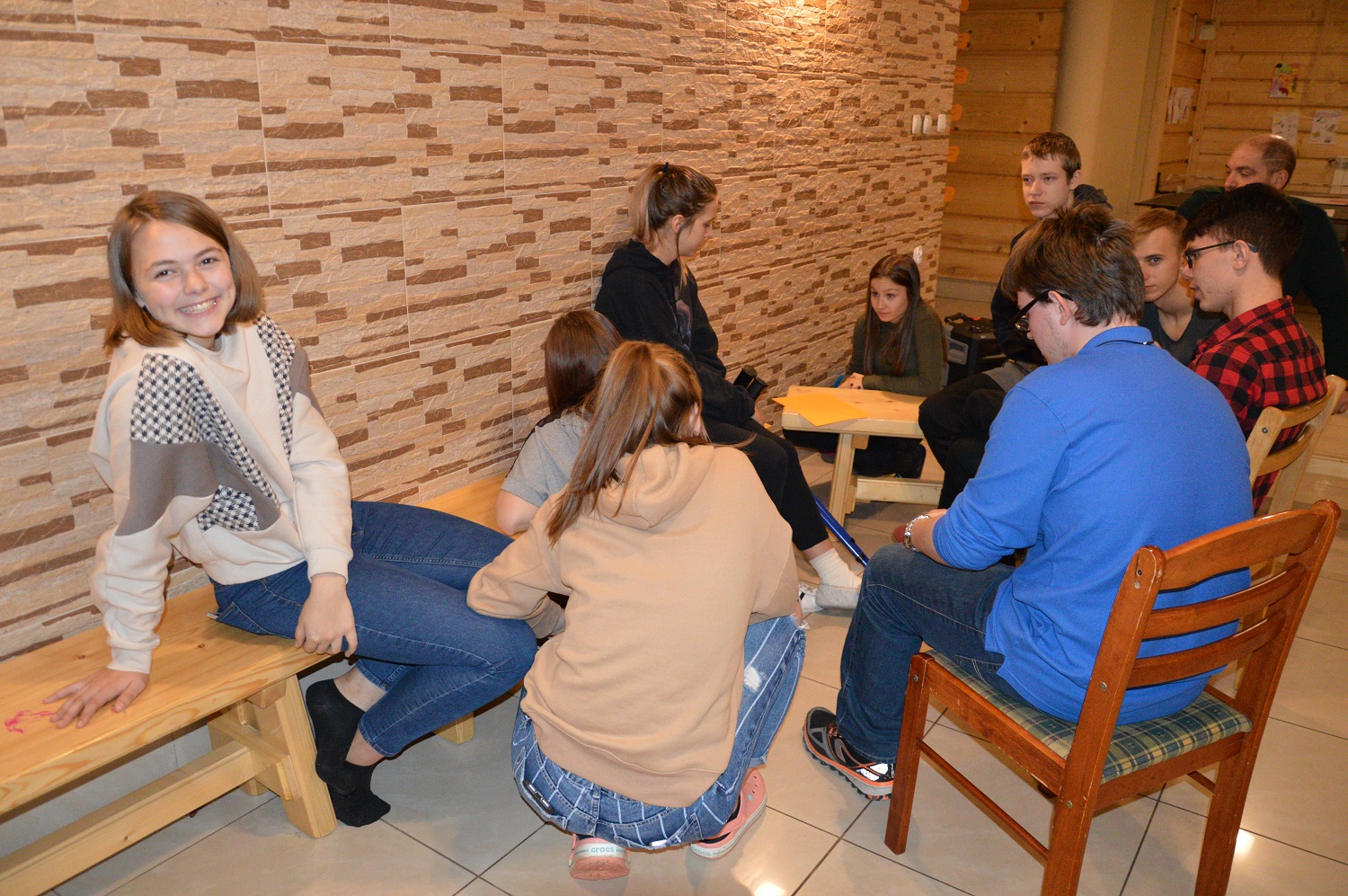 W ramach harmonogramu wymiany przeprowadzone zostały zajęcia integracyjne wspólnie z podopiecznymi Warsztatu Terapii Zajęciowej przy Duszpasterskim Stowarzyszeniu Osób z Upośledzeniem Umysłowym z Krakowa. Uczestnicy przeprowadzili rozmowy i wywiady z podopiecznymi, zapoznali się z działalnością organizacji, a także wspólnie wykonali bożonarodzeniowe bombki ze styropianu i cekinów.