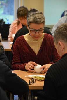 W ramach harmonogramu wymiany przeprowadzone zostały zajęcia integracyjne wspólnie z podopiecznymi Warsztatu Terapii Zajęciowej przy Duszpasterskim Stowarzyszeniu Osób z Upośledzeniem Umysłowym z Krakowa. Uczestnicy przeprowadzili rozmowy i wywiady z podopiecznymi, zapoznali się z działalnością organizacji, a także wspólnie wykonali bożonarodzeniowe bombki ze styropianu i cekinów.