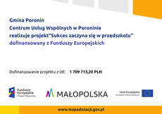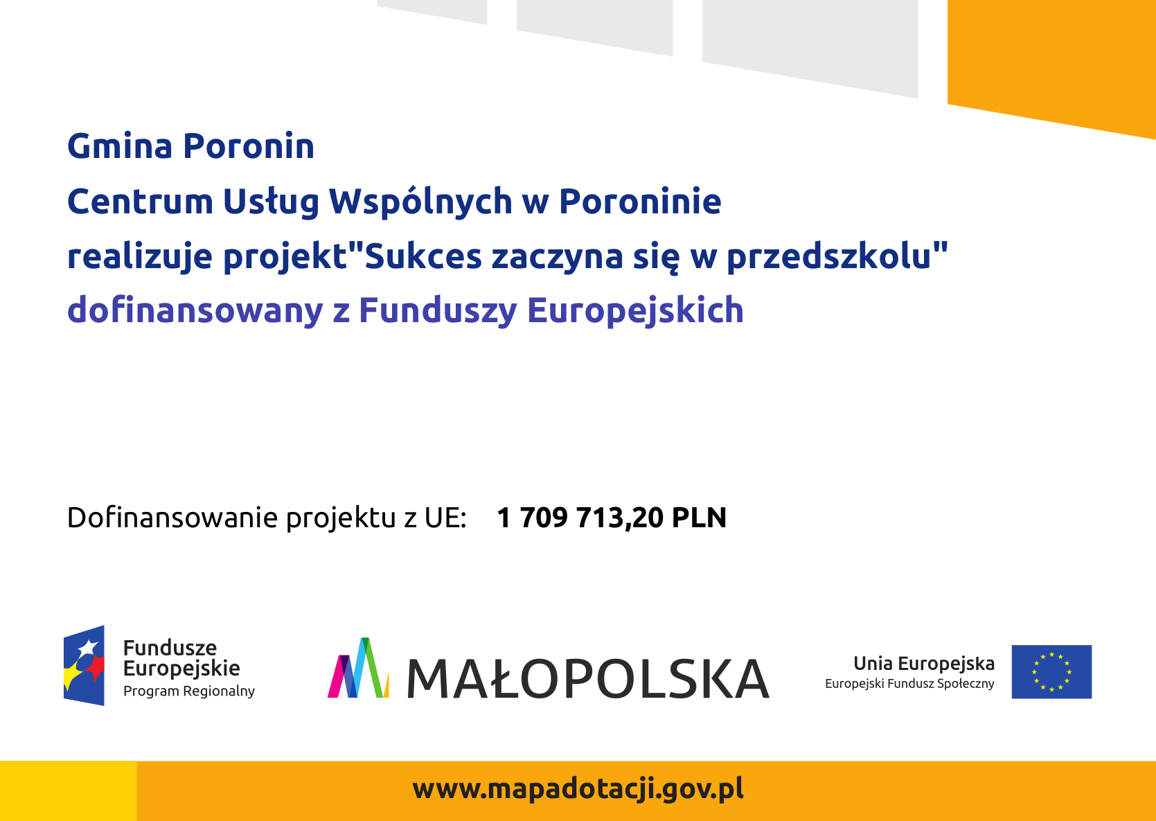 Gmina Poronin zakończyła realizację projektu „Sukces zaczyna się w przedszkolu” w ramach Regionalnego Programu Operacyjnego Województwa Małopolskiego na lata 2014 – 2020, Oś Priorytetowa Wiedza i Kompetencje Działanie 10.1, Poddziałanie 10.1.2 z Europejskiego Funduszu Społecznego w przedszkolu w roku szkolnym 2018/2019 działały 4 oddziały na łącznie 60 miejsc.Przedszkole znajduje się w części Szkoły Podstawowej w Zębie jest zlokalizowane na 3 kondygnacjach gdzie znajdują się 4 sale zabawowe, łazienki, szatnie, jadalnie wraz z zapleczem kuchennym oraz gabinet logopedy. Ponadto budynek został dostosowany do potrzeb dzieci z niepełnosprawnościami. Przedszkole jest czynne przez 10 godzin (7 - 17). Dodatkowo realizowano zajęcia specjalistyczne i rozwijające kompetencje kluczowe (język angielski, zajęcia logopedyczne a także zajęcia rozwijające kompetencje: społeczno – emocjonalne, matematyczno-techniczne, cyfrowe) z użyciem odpowiednich pomocy dydaktycznych oraz specjalistycznego oprogramowania. Zajęciami objęte są wszystkie dzieci biorące udział w wychowaniu przedszkolnym. Nauczyciele zatrudnieni w przedszkolu podniosli swoje kompetencje biorąc udział w szkoleniach z zakresu doskonalenia pracy z dziećmi w wieku przedszkolnym.
