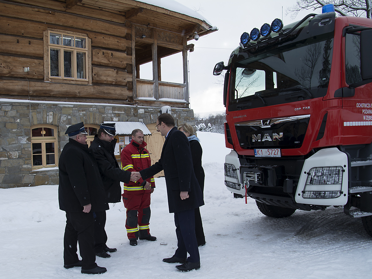 W piątek 4 stycznia br., został przekazany nowy samochód ratowniczo-gaśniczy dla strażaków OSP Ząb. Oficjalnie kluczyki do pojazdu przekazał Wójt Gminy Poronin Anita Żegleń i Poseł na Sejm RP Edward Siarka. Odebrał je kierowca jednostki wraz z Prezesem Romanem Ciężadlikiem i Wiceprezesem Dariuszem Gąsienicą.
