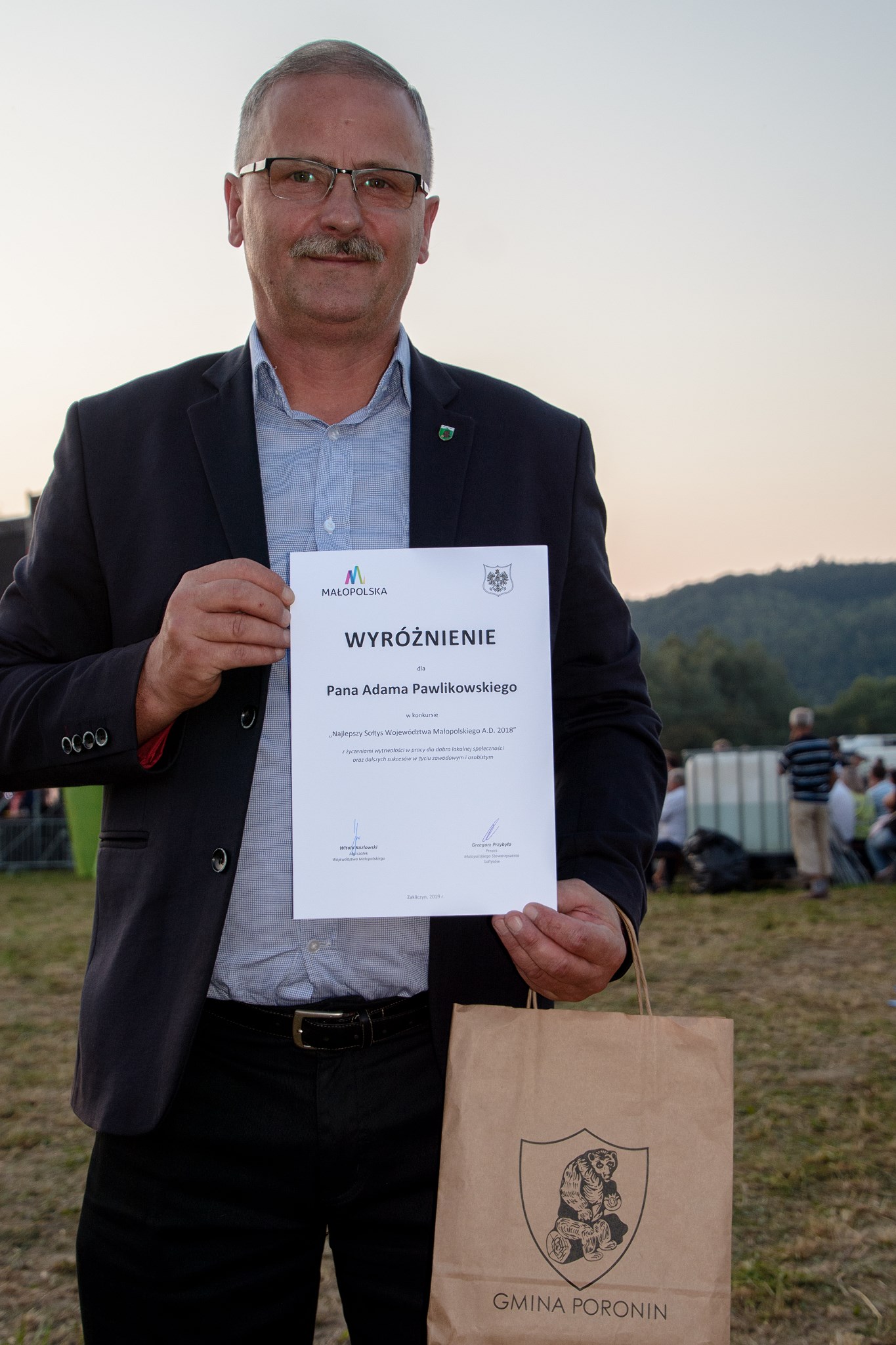 Konkurs 'Najlepszy Sołtys Małopolski A.D 2018" został zorganizowany przez Małopolskie Stowarzyszenie Sołtysów wspólnie z Urzędem Marszałkowskim Województwa Małopolskiego. Do tegorocznej, dwudziestej pierwszej już edycji, zgłoszony został Sołtys Murzasichla, pan Adam Pawlikowski. Na rozstrzygnięciu konkursu, odbywającego się podczas Dożynek Wojewódzkich w Gminie Zakliczyn pan Adam za wytrwałą pracę dla dobra lokalnej społeczności otrzymał wyróżnienie od Marszałka Województwa Małopolskiego i Prezesa Małopolskiego Stowarzyszenia Sołtysów oraz nagrodę od Wójta Gminy Poronin. Gratulujemy!