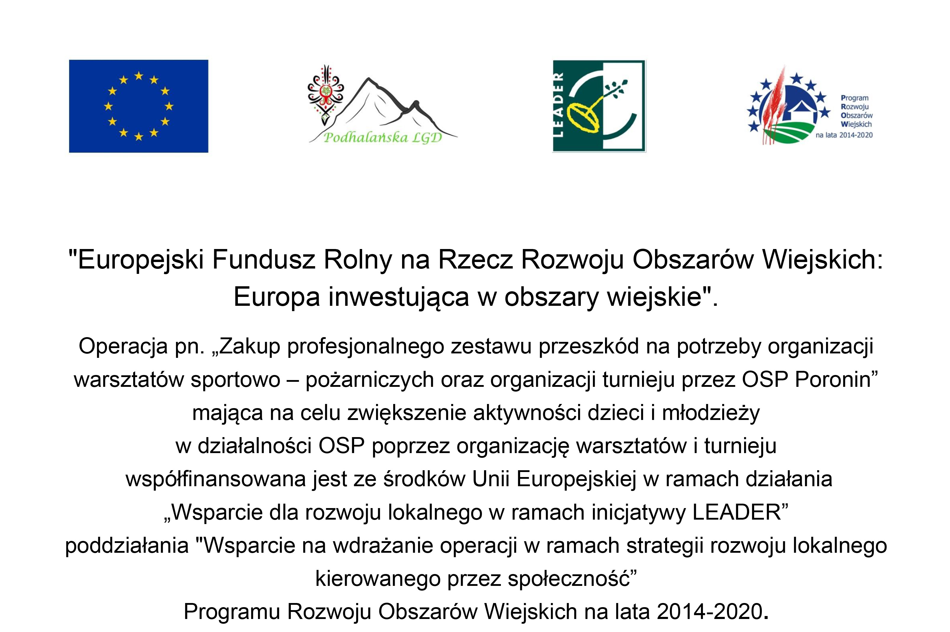 Turniej zrealizowany został w ramach projektu pn. „Zakup profesjonalnego zestawu przeszkód na potrzeby organizacji warsztatów sportowo – pożarniczych oraz organizacja turnieju przez OSP Poronin" współfinansowanego ze środków Unii Europejskiej w ramach działania Wsparcie dla rozwoju lokalnego w ramach inicjatywy LEADER, objętego Programem Rozwoju Obszarów Wiejskich na lata 2014-2020. Celem projektu było zwiększenie aktywności dzieci i młodzieży w działalność OSP poprzez organizację warsztatów i turnieju.