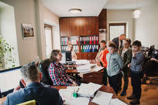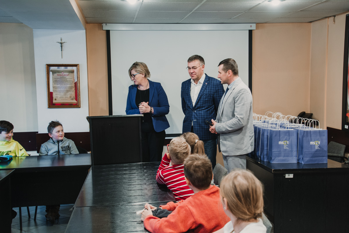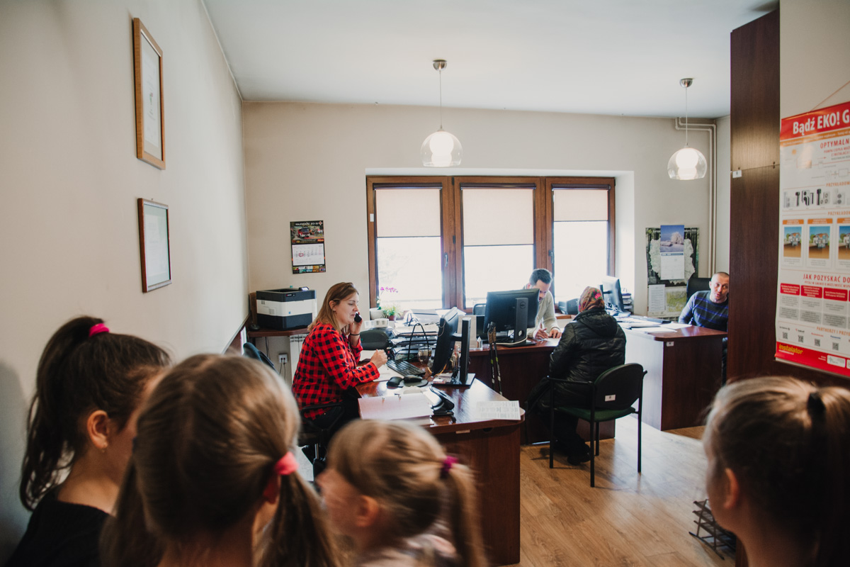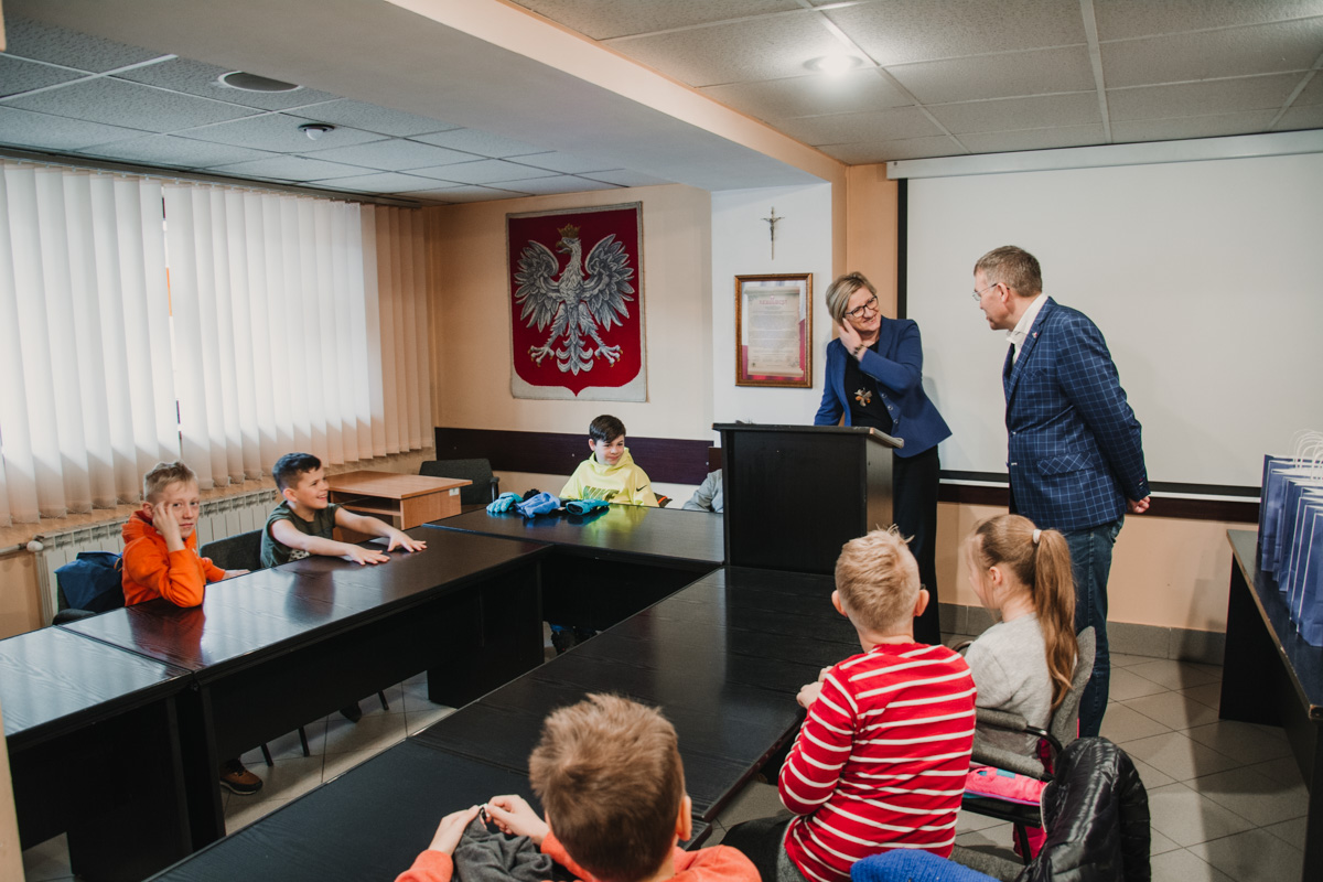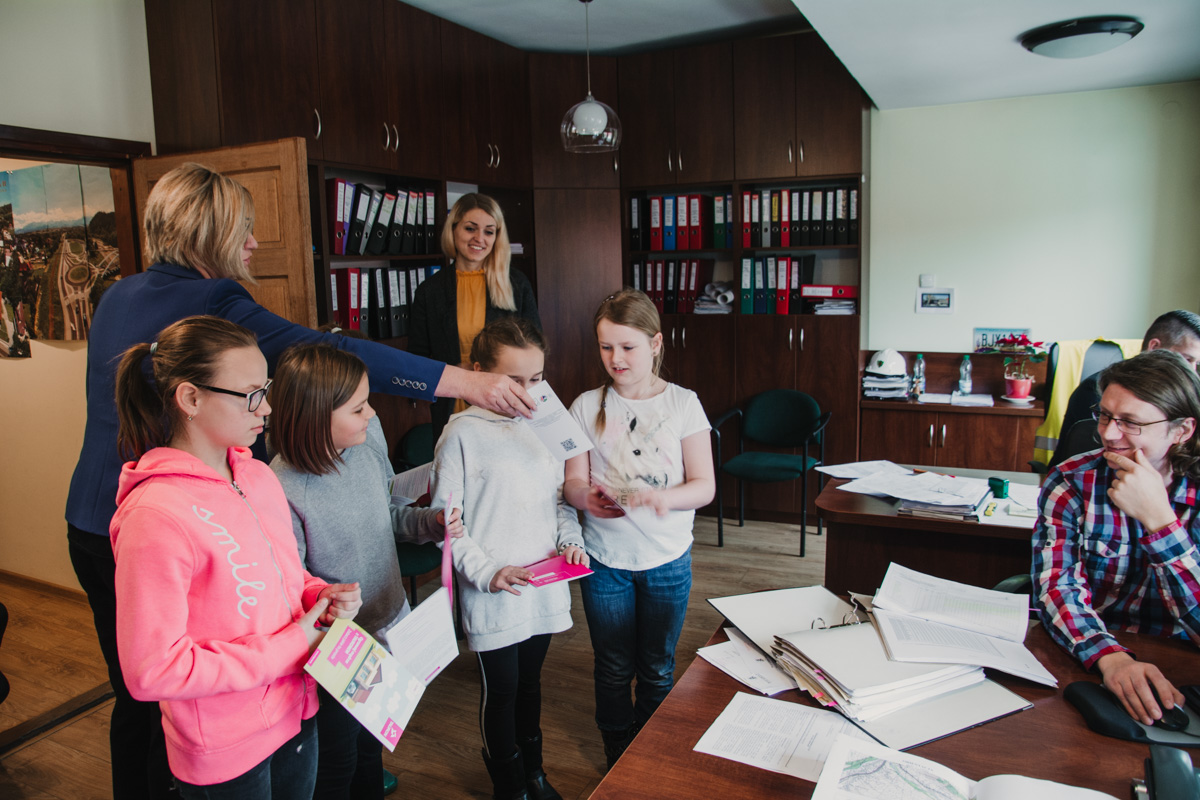 Dnia 20 lutego w Urzędzie Gminy w Poroninie miała miejsce niezwykła wizyta. W odwiedziny do swojego byłego wychowawcy, a obecnie Pani Wójt Gminy Poronin Anity Żegleń przybyli uczniowie klasy 4 Szkoły Podstawowej im. Legionów Polskich w Poroninie. Pani Wójt wraz ze swym zastępcą Stanisławem Bafią, skarbnikiem Pawłem Parą oraz sekretarzem Katarzyną Krzyściak przywitali gości w sali obrad oraz opowiedzieli czym się zajmują. Zaciekawieni uczniowie zadawali wiele rzeczowych pytań, zainteresował ich budżet gminy, przejścia dla pieszych i dziury w drogach. A nasz skarbnik dowiedział się, że ma już swojego następcę - Antka. Następnie uczniowie podzielili się na grupy i odwiedzili wszystkie pokoje, gdzie dowiadywali się jakie załatwia się sprawy, czym kto się zajmuje. Na koniec wizyty otrzymali drobne upominki i serdecznie uściskali swojego byłego wychowawcę.