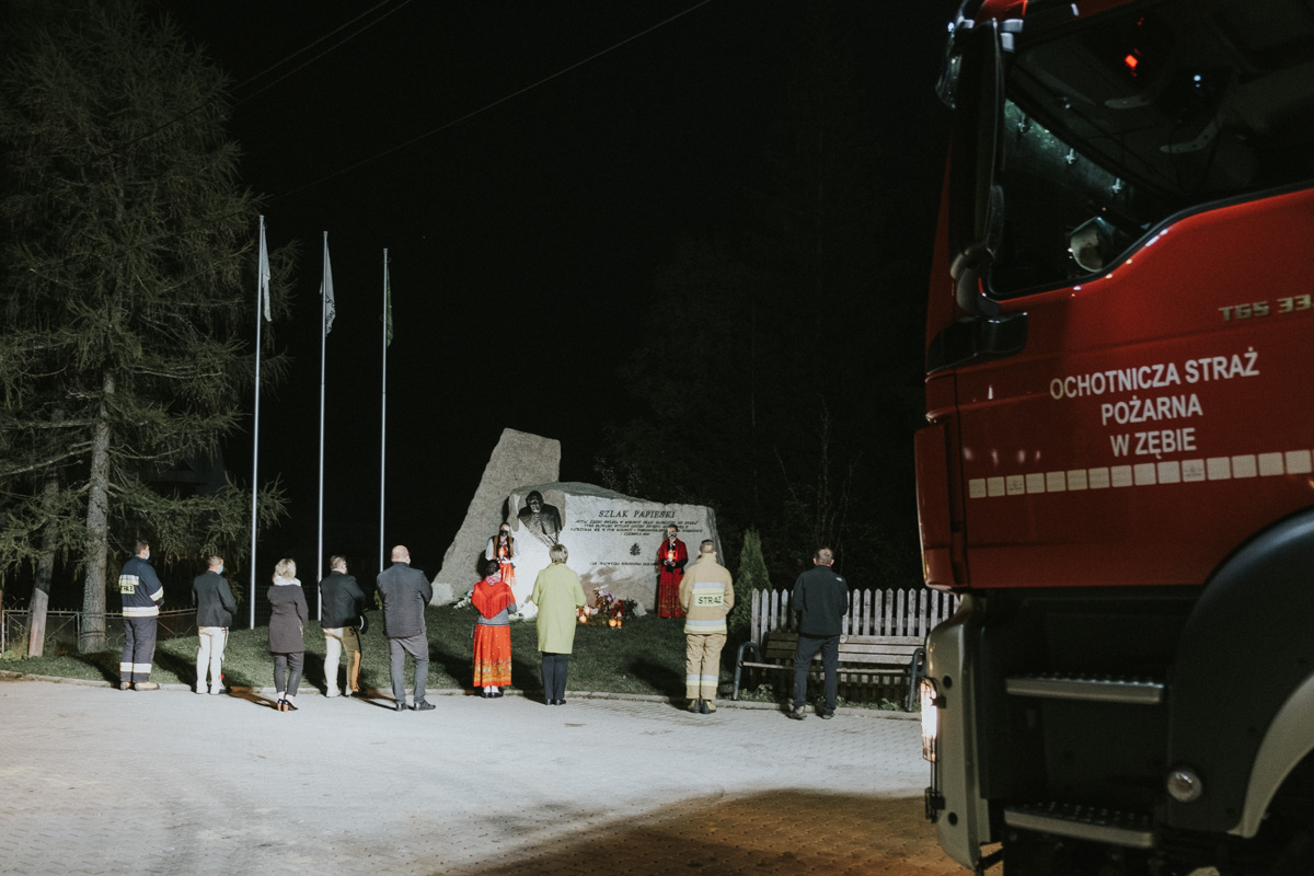 Dzień 22 października co roku jest dniem św. Jana Pawła II. W związku z tym pani Wójt wraz z pracownikiem Gminnego Centrum Informacji i Promocji w Poroninie oraz delegacje Zespołu Szkolno- Przedszkolnego w Zębie, Rady Sołeckiej Sołectwa Ząb, OSP w Zębie i Związku Podhalan Oddział Ząb złożyły wiązanki kwiatów przy Obelisku Papieskim w Zębie. A wszystko po to, aby podtrzymać tradycję corocznych spotkań modlitewnych, tym razem w zmienionej formie.