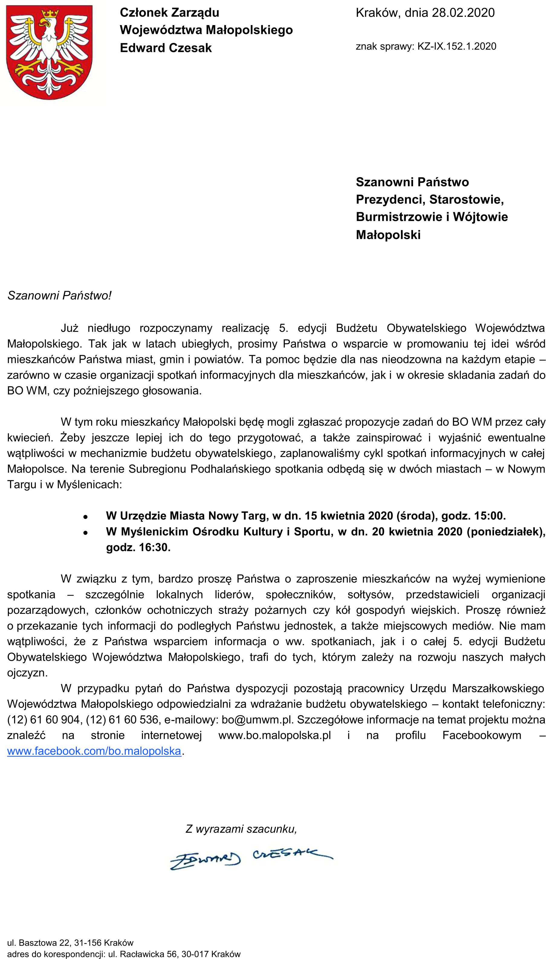 5. edycja Budżetu Obywatelskiego Województwa Małopolskiego