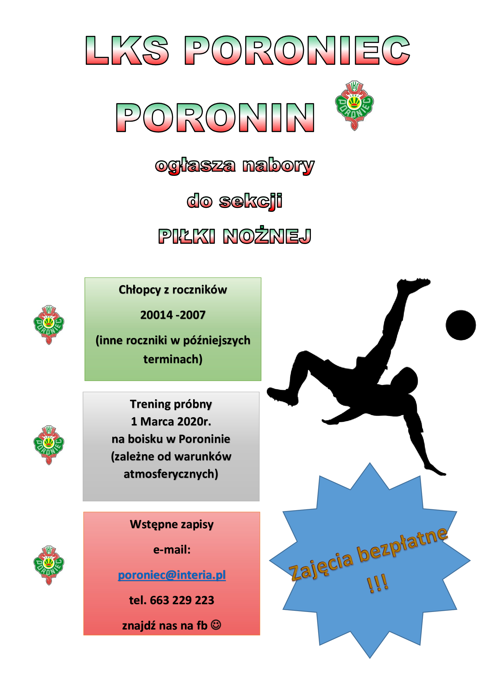 LKS Poroniec Poronin - Zapisy do sekcji piłki nożnej