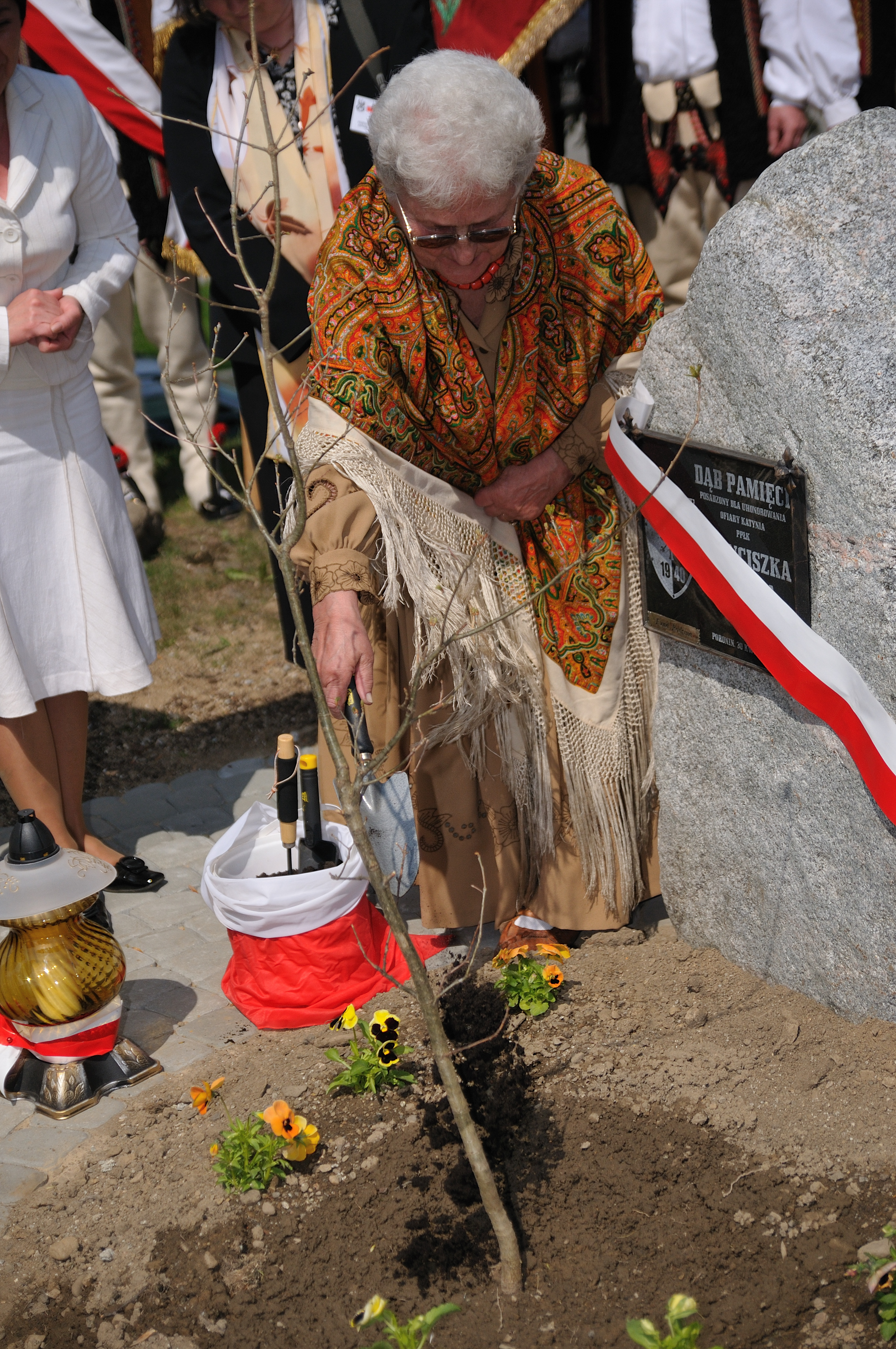 Pod koniec lat 80. zapisała się do Stowarzyszenia Rodzin Katyńskich i mnie też do tego namówiła. W naszej rodzinie sprawa Katynia zawsze była ważna, a dzięki cioci Broni stała się jeszcze ważniejsza. To właśnie ciocia postarała się,aby dąb katyński posadzić na terenie Gminnego Ośrodka Kultury w Poroninie. Nasza rodzina sfinansowała wykonanie tabliczki upamiętniającej to wydarzenie – a ciocia Bronia, oczywiście, zorganizowała zbiórkę pieniędzy wśród naszej rodziny na ten cel. Ciocia była też współorganizatorką konkursu „Katyń - ocalić od zapomnienia”. Chętnie uczestniczyła w spotkaniach z młodzieżą, bo lubiła dzielić się wiedzą o tamtych okrutnych czasach.A gdy nadarzyła się okazja wyjazdu do Katynia, ciocia Bronia była od razu gotowa… a i mnie nie musiała długo namawiać, chociaż miałam paszport nieaktualny, mało czasu, ale się udało…