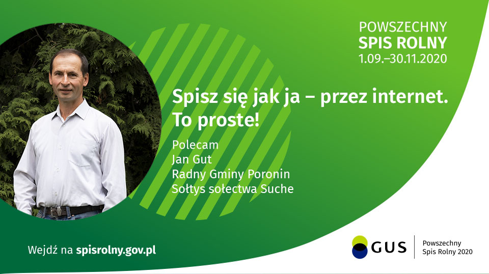 Przypominamy że na terenie całego kraju, do 30 listopada 2020 r. trwa Powszechny Spis Rolny 2020. Istnieje możliwość spisu przez internet. Udział w spisie jest obowiązkowy.