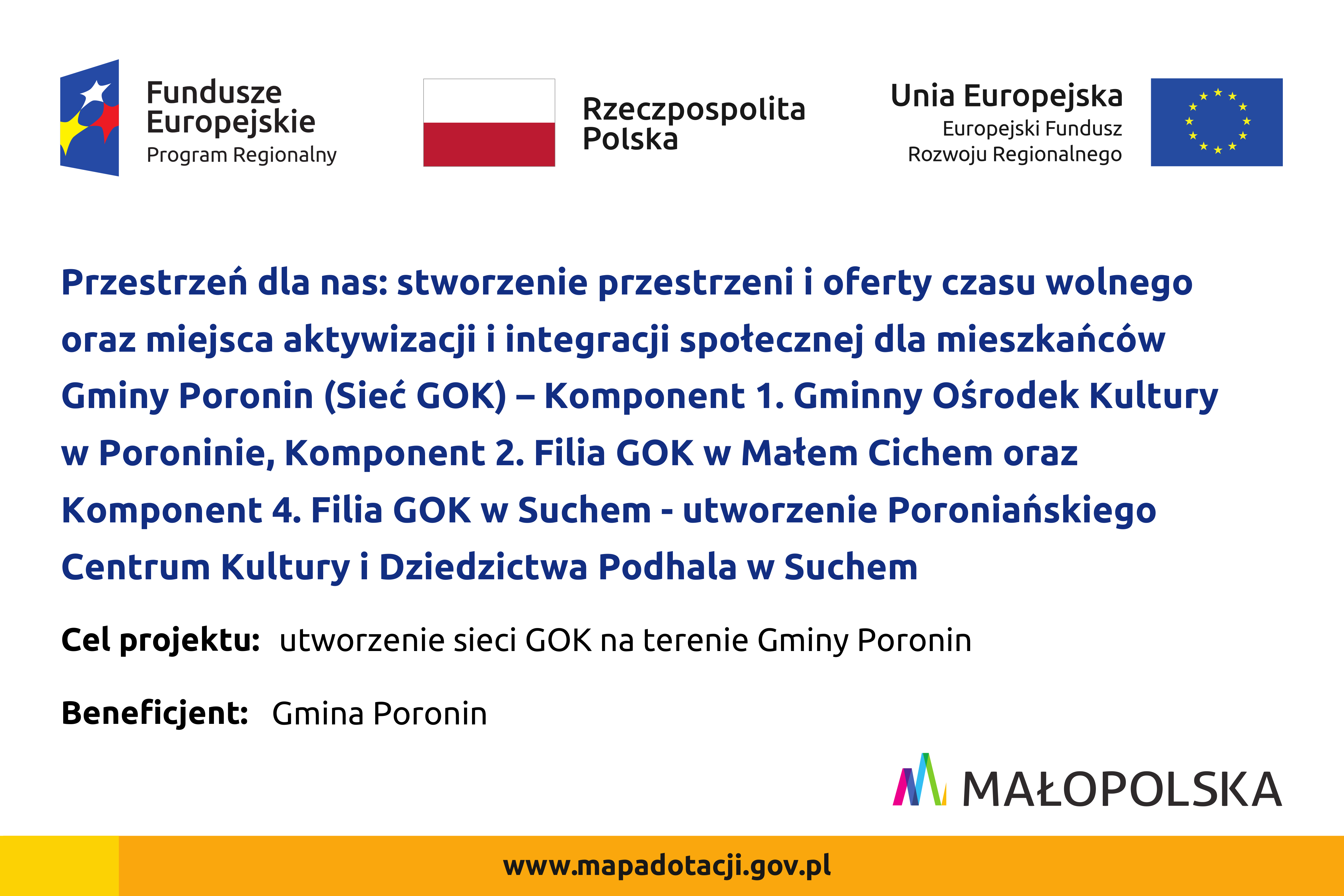 Zadanie realizowane jest w ramach Regionalnego Programu Operacyjnego Województwa Małopolskiego na lata 2014-2020, Oś Priorytetowa 11 Rewitalizacja przestrzeni regionalnej, Działanie 11.2 Odnowa obszarów wiejskich z Europejskiego Funduszu Rozwoju Regionalnego.