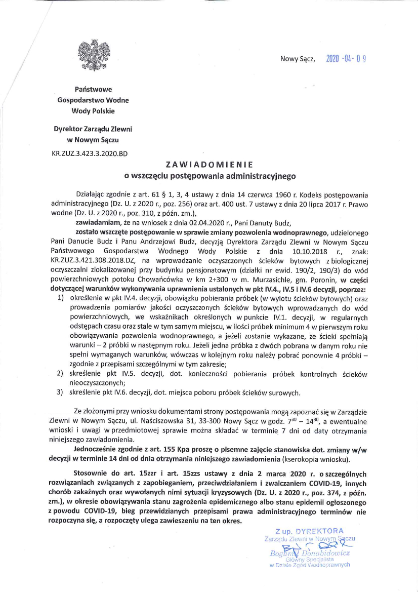 Zawiadomienie o wszczęciu postępowania administracyjnego
