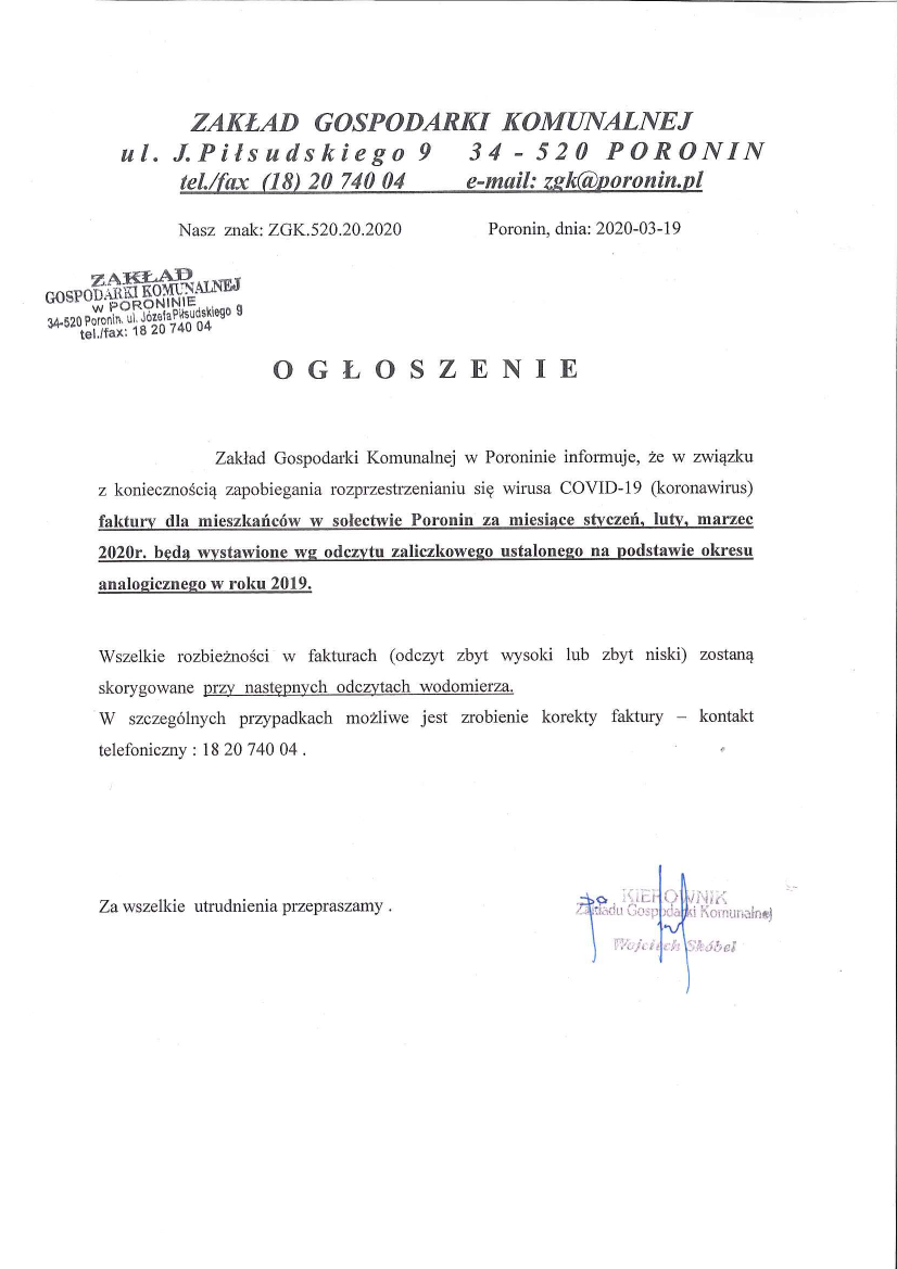 ZGK informuje