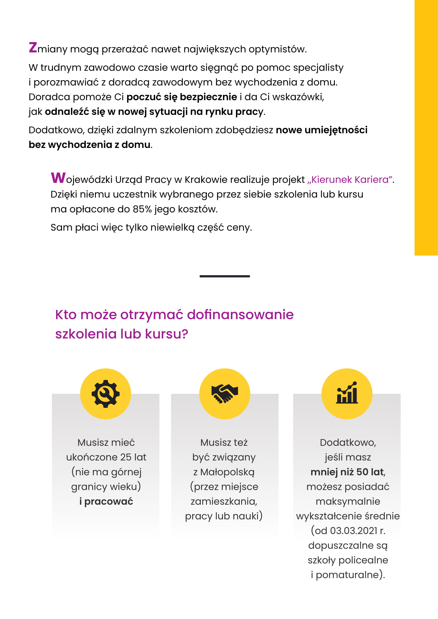 Dotacje dla pracujących - możliwość podniesienia kwalifikacji z Projektem Kierunek Kariera
