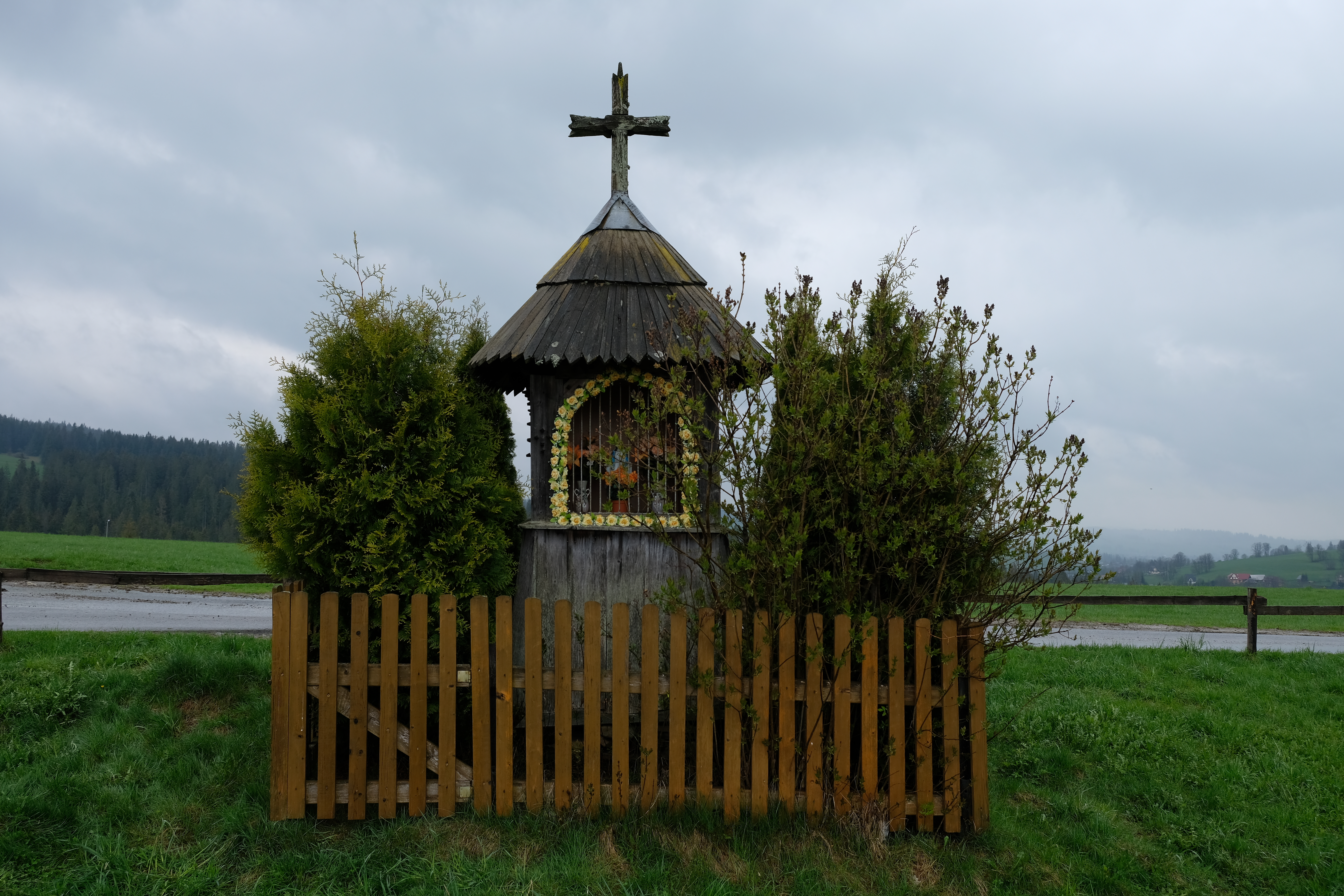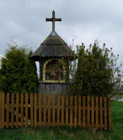 Kapliczka drewniana otoczona drewnianym płotem z 1816r. W środku figura Matki Bożej zabezpieczona prętami metalowymi. Kaplica kryta gontem. Na dachu krzyż. Obok rosną drzewa liściaste. Kapliczka położona w urokliwym miejscu przy szlaku turystycznym