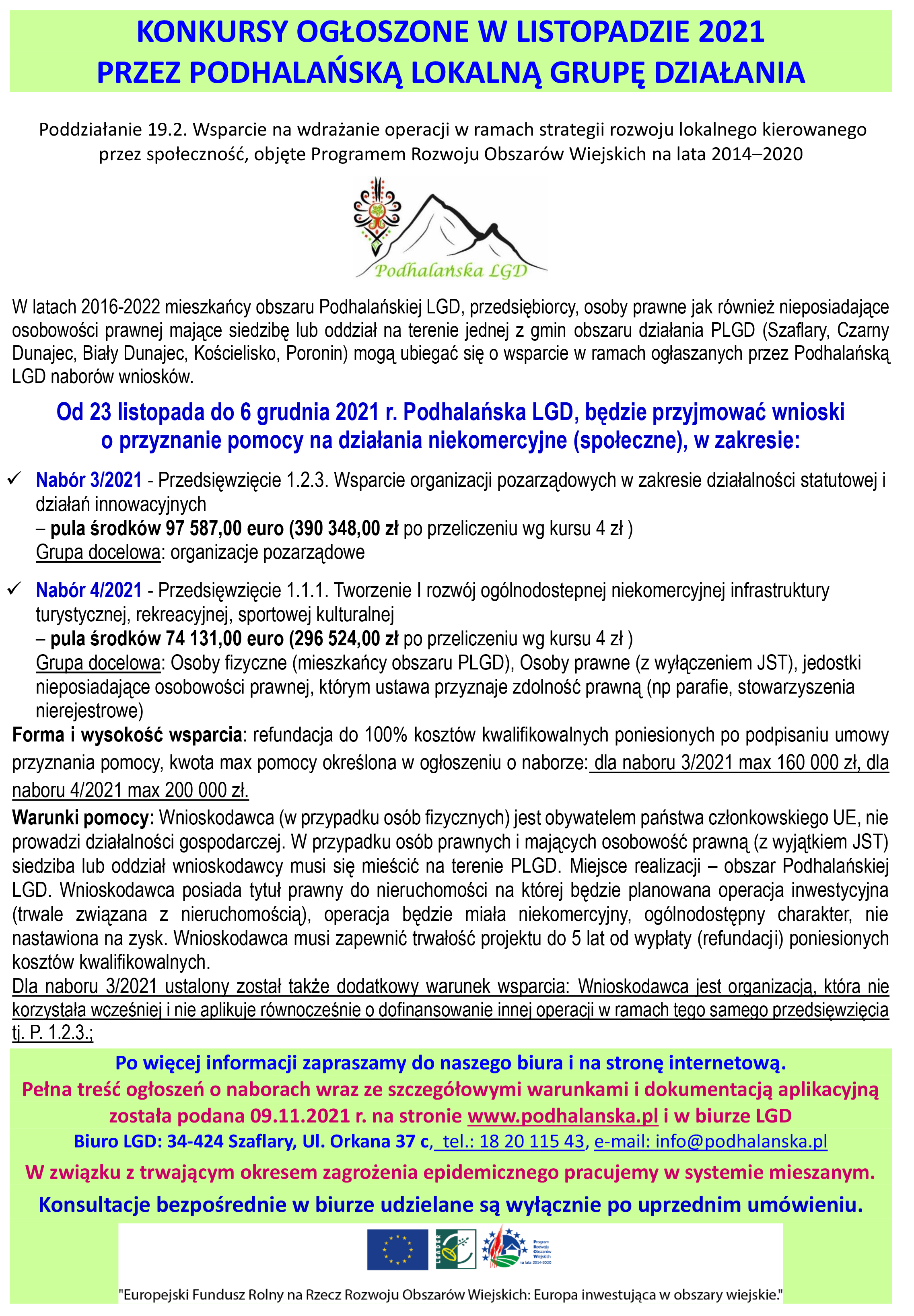 Konkursy Podhalańskiej Lokalnej Grupy Działania
