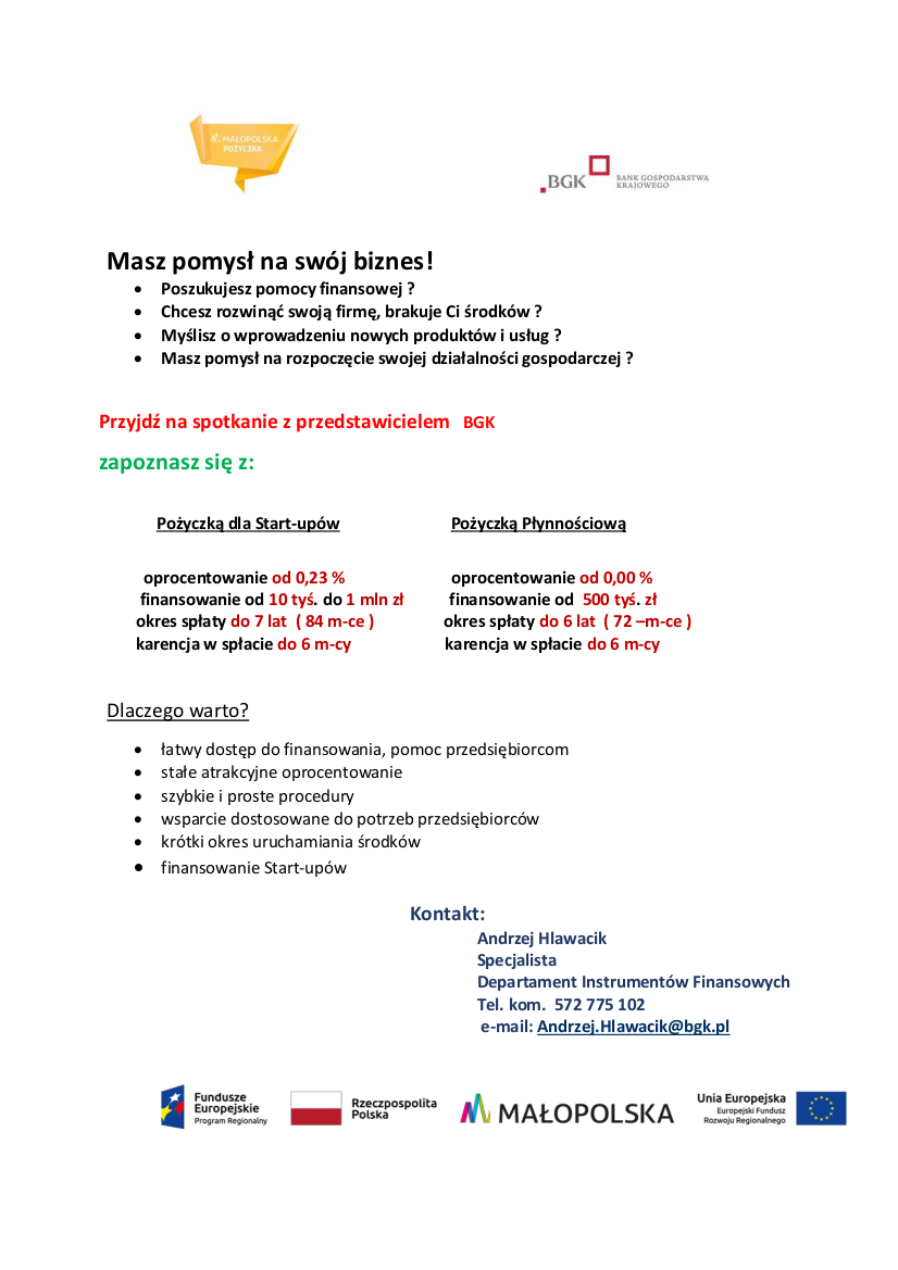 Pomoc dla Przedsiębiorców oraz osób zainteresowanych założeniem działalności gospodarczej