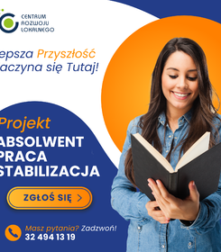 Centrum Rozwoju Lokalnego oraz Stowarzyszenie na Rzecz Zrównoważonego Rozwoju Społeczno-Gospodarczego „KLUCZ” serdecznie zapraszają studentów i absolwentów szkół wyższych do udziału w projekcie „Absolwent, Praca, Stabilizacja”. Projekt jest adresowany do osób zamieszkujących województwa: śląskie, opolskie i małopolskie, które posiadają orzeczenie o stopniu niepełnosprawności lub orzeczenie równoważne.