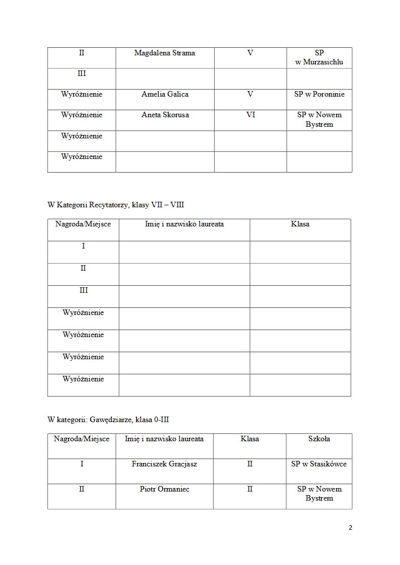 W kategorii recytacja, w klasach VII-VIII