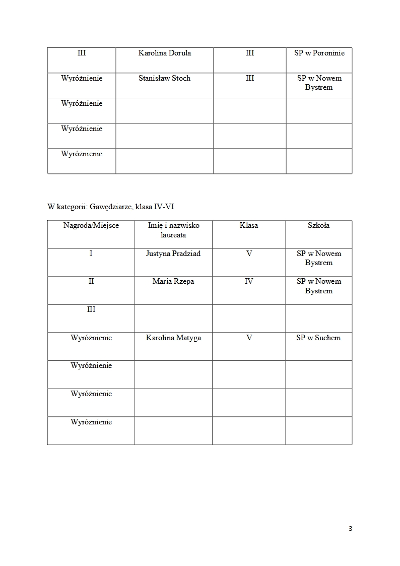 nie przyznano miejsc z powodu braku uczestników.