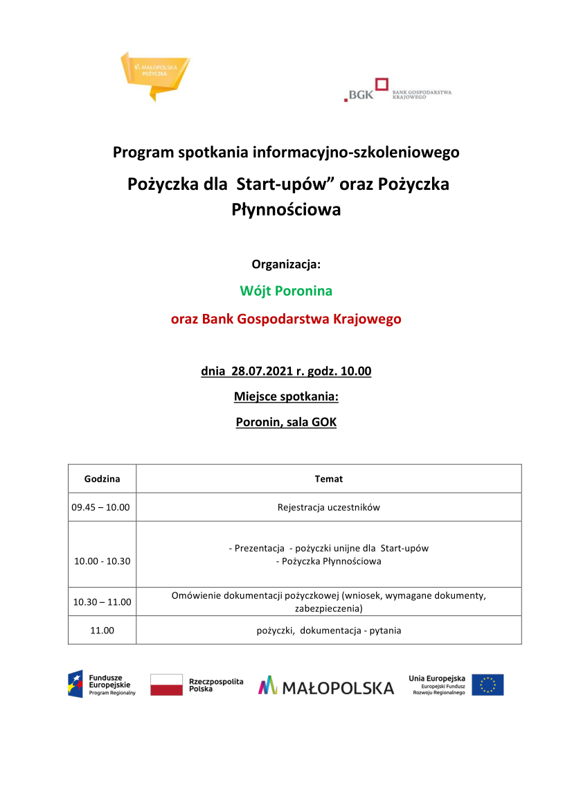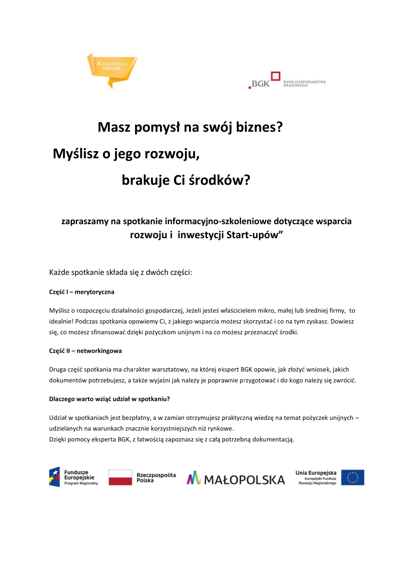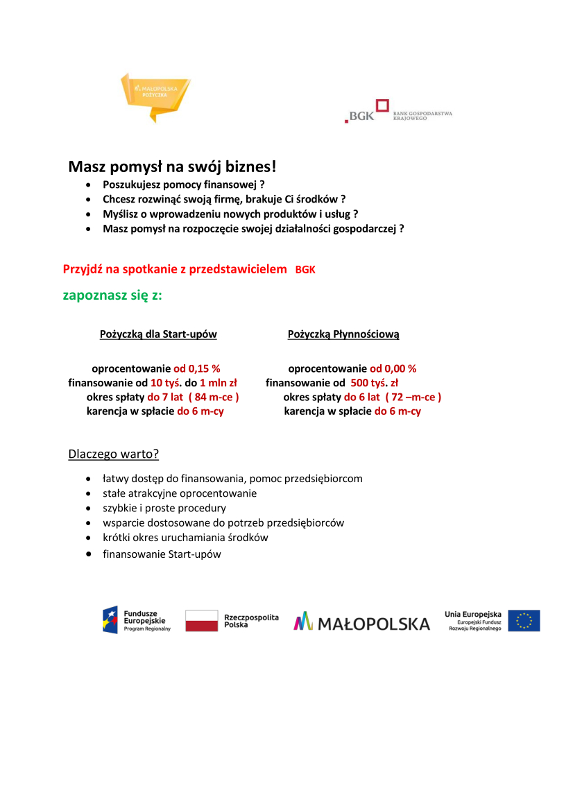 Spotkanie informacyjno-szkoleniowe "Pożyczka dla Start-upów” oraz "Pożyczka Płynnościowa"