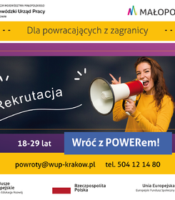 Projekt jest realizowany przez Wojewódzki Urząd Pracy w Krakowie w ramach Programu Operacyjnego Wiedza Edukacja Rozwój, współfinansowanego ze środków Europejskiego Funduszu Społecznego.