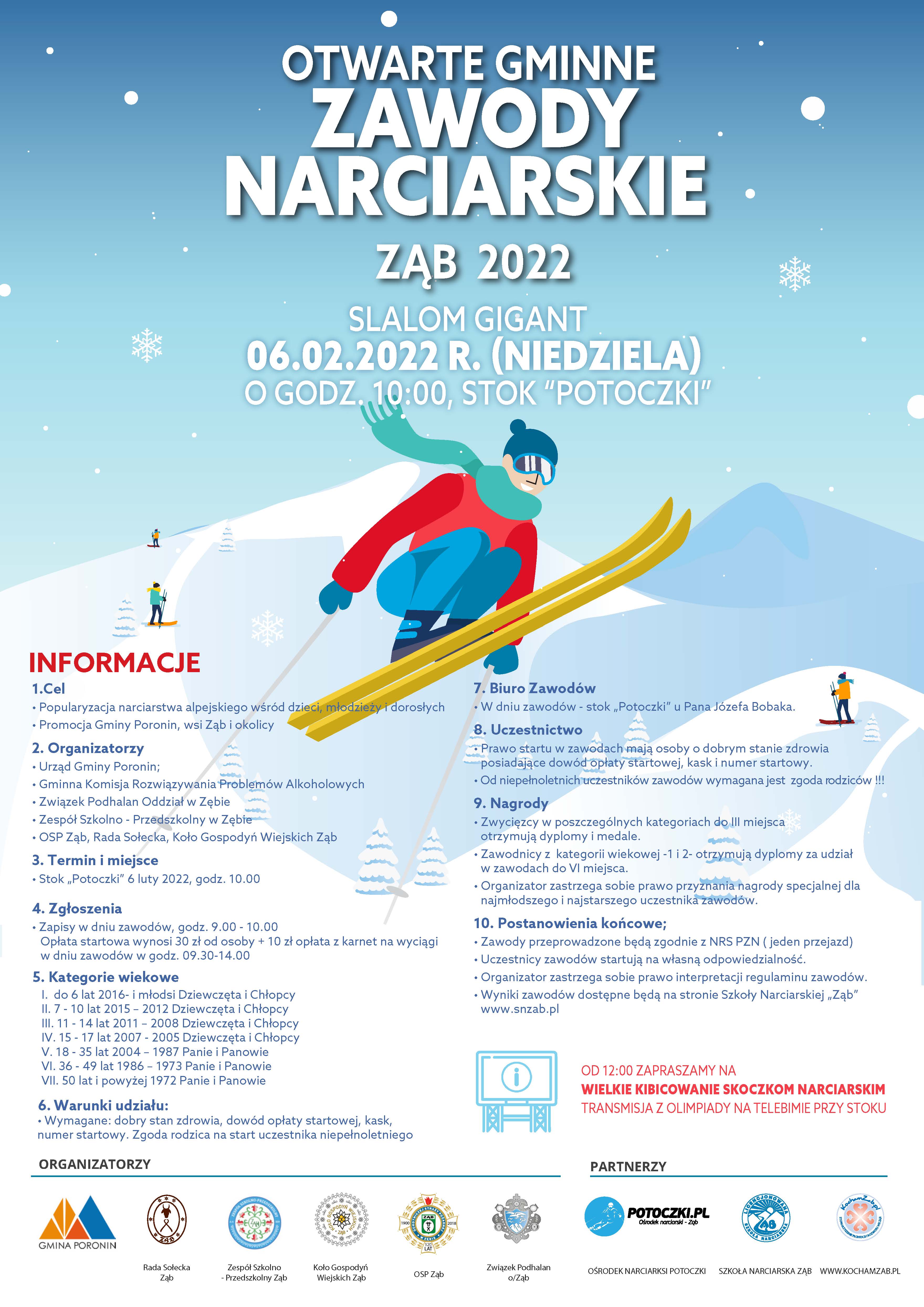 Zapraszamy chętnych do udziału w Gminnych Zawodach Narciarskich, które odbędą się 06 lutego 2022 r. o godz. 10:00