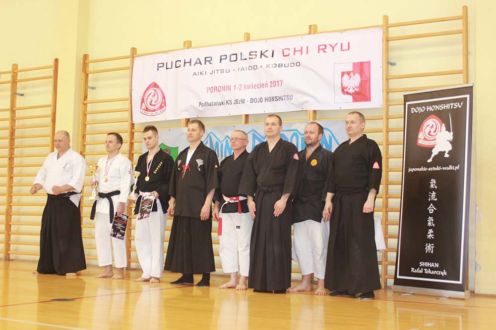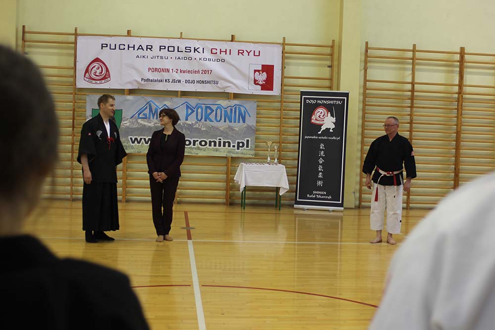 W dniach 1 i 2 kwiecień 2017 r. w Poroninie odbyło się szkolenie z Japońskich Sztuk Walki zakończone zawodami rangi Pucharu Polski. Na zaproszenie Podhalański KS odpowiedziały 4 kluby: Oświęcim, Chorzów, Katowice i Łódź. Impreza odbyła się przy udziale środków z programu na wspieranie zadań z zakresu kultury fizycznej Wójta Gminy Poronin. Oficjalnego otwarcia zawodów dokonała Pani mgr Zofia Chowaniec dyrektor Zespołu Szkół w Poroninie, gdzie odbywało się to sportowe wydarzenie. Organizatorem i gospodarzem z ramienia Podhalański KS był Shihan Rafał Tokarczyk. Nasi zawodnicy dzielnie reprezentując nasz klub i region wywalczyli 2 medale tj. złoto w klasie mistrzowskiej kategorii Iaido Chi Ryu - prezentacje form z mieczem i brąz w kategorii kata bez broni oba instruktor i zawodnik sensei Jerzy Podsiadło. Debiutant Grzegorz Małysa otarł się o podium ostatecznie zajął 4 miejsce w kategorii kata Kobudo - prezentacje form z kijem długim. Imprezę pod każdym względem można zaliczyć do udanych co podkreślali uczestnicy i liderzy przybyłych klubów. Już dziś mamy zaproszenie na kolejną edycje Pucharu Polski tym razem do Oświęcimia gdzie postaramy się godnie reprezentować klub, gminę Poronin i region.