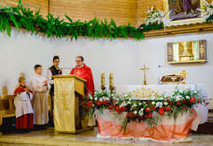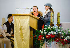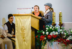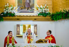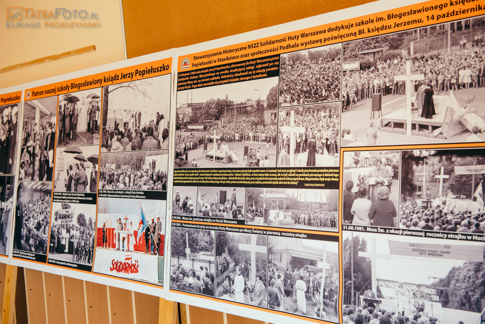Po mszy świętej i poświęceniu sztandaru szanowni goście obejrzeli program artystyczny w wykonaniu uczniów szkoły w Stasikówce, przygotowany przez nauczycieli pod przewodnictwem dyrektora Szkoły Podstawowej w Stasikówce, pani Krystyny Gawron-Mardos. Następnie udano się do budynku szkoły, gdzie została odsłonięta tablica pamiątkowa, a goście obejrzeli wystawę poświęconą życiu i działalności Księdza Jerzego Popiełuszki.