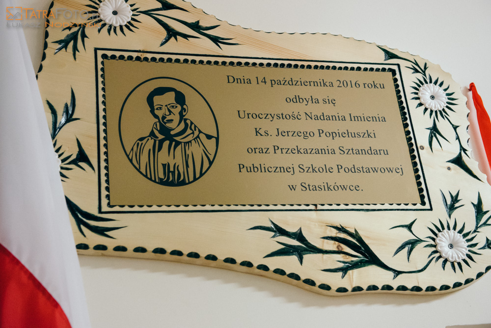 14 października 2016 r. odbyło się uroczyste nadanie Szkole Podstawowej w Stasikówce imienia Księdza Jerzego Popiełuszki. Główna część uroczystości odbyła się w kościele parafialnym Świętego Józefa Rzemieślnika w Stasikówce. Mszę świętą celebrował ksiądz Janusz Kubrak, przyjaciel Księdza Popiełuszki, wraz z księdzem Zbigniewem Syczikiem, proboszczem parafii Stasikówka, oraz księdzem Michałem Wichrem, byłym katechetą ze Szkoły Podstawowej w Stasikówce. W czasie uroczystości został poświęcony sztandar, który został ufundowany przez Józefa Pawlikowskiego Bulcyka.