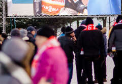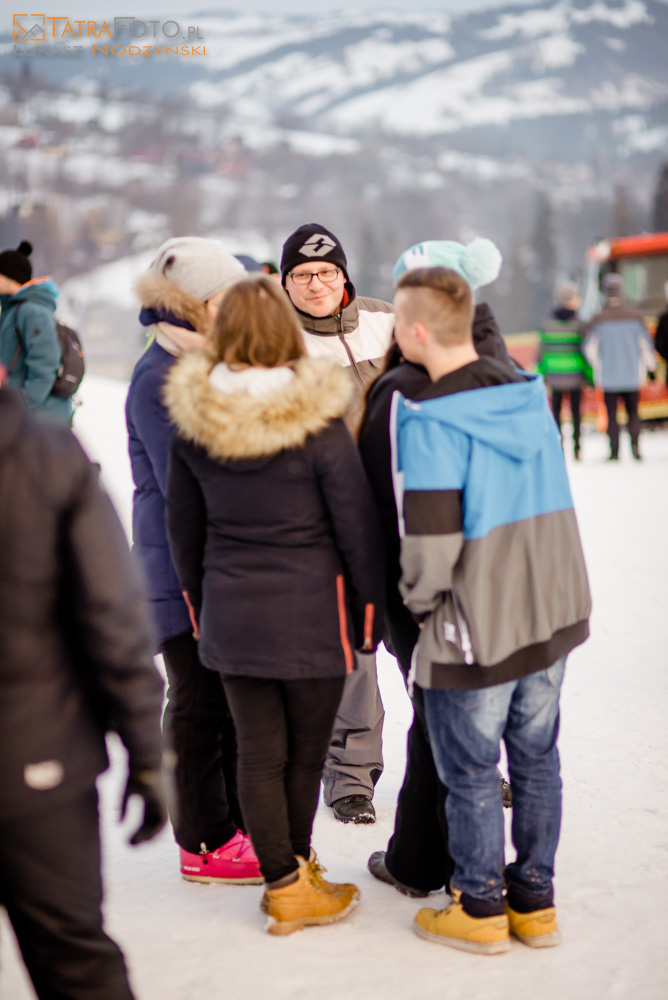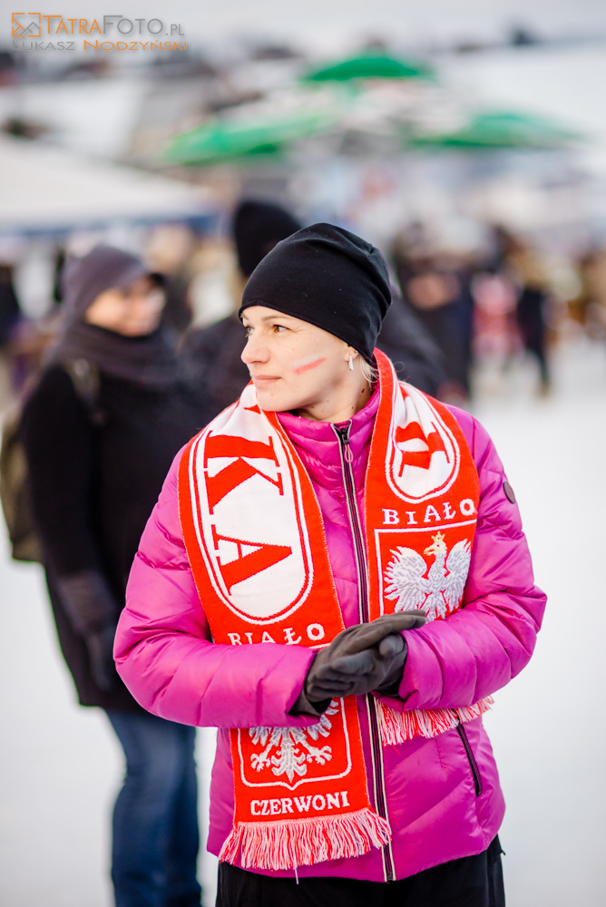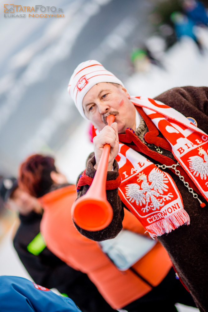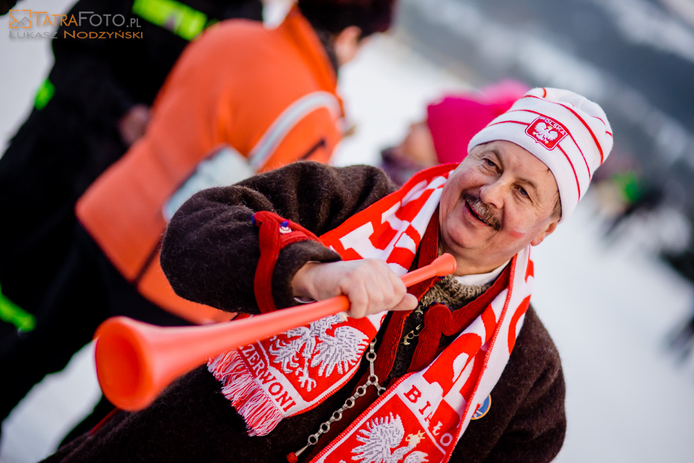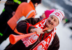 Wspólne kibicowanie poprzedziły zawody narciarskie retro - na starym sprzęcie. Fani skoków ubrani w biało-czerwone barwy obserwowali zmagania w niemieckim Obersdorfie. Niektórzy byli wyposażeni w kibicowskie trąby.