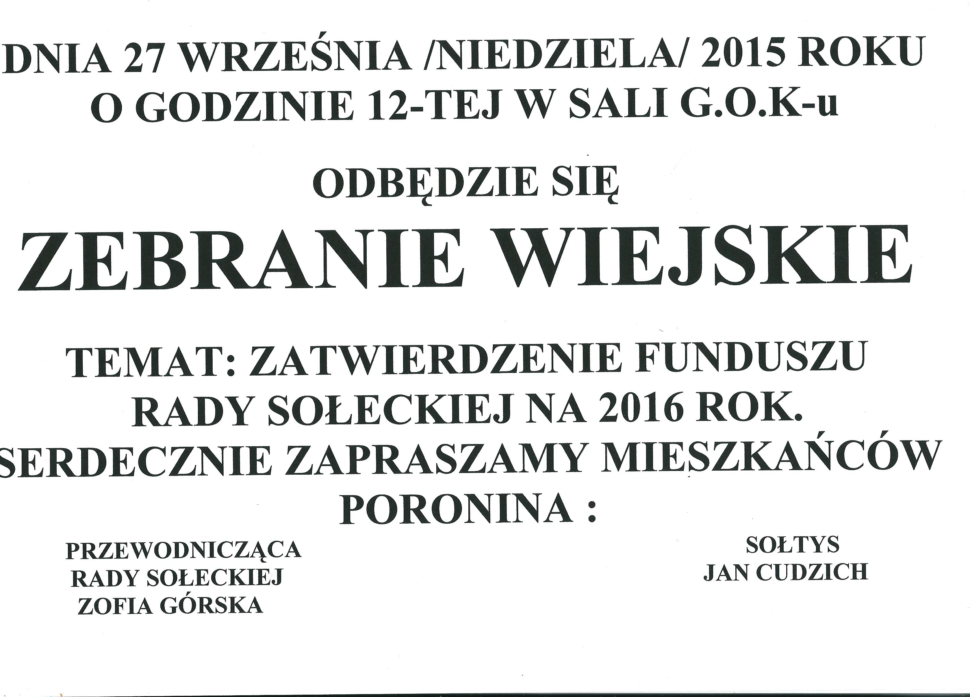 Strona główna » Dla mieszkańca » Aktualności » Zebranie wiejskie w Poroninie