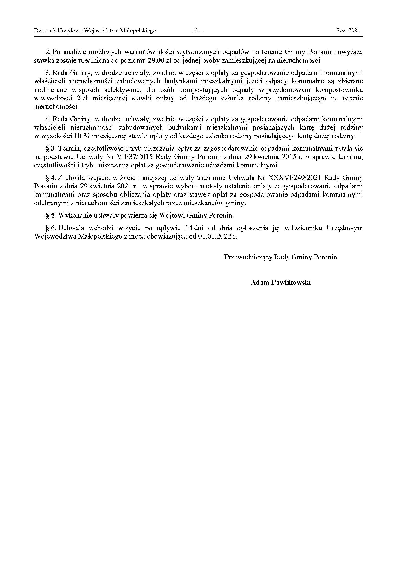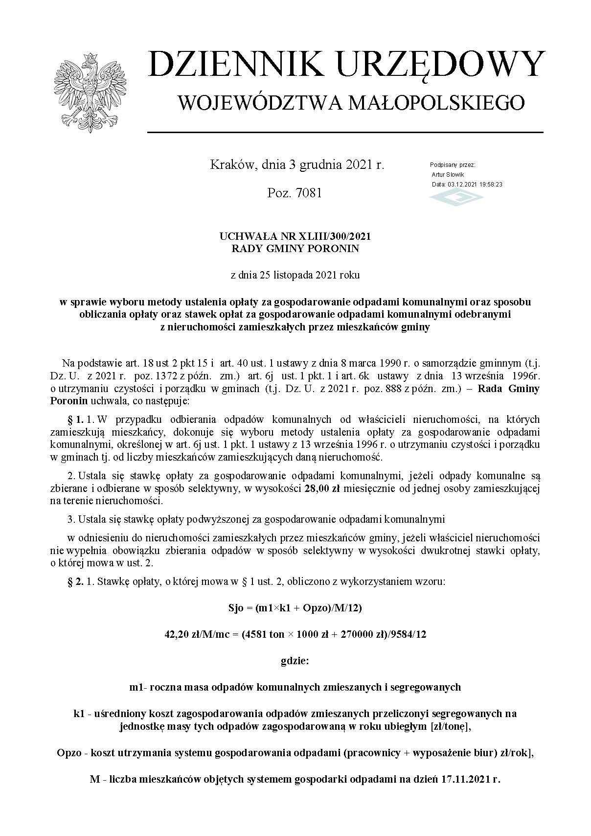 UCHWAŁA NR XLIII/300/2021 RADY GMINY PORONIN z dnia 25 listopada 2021 roku