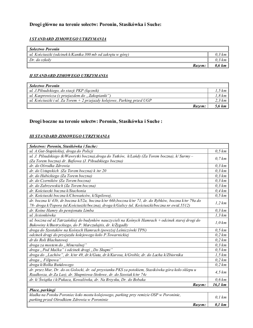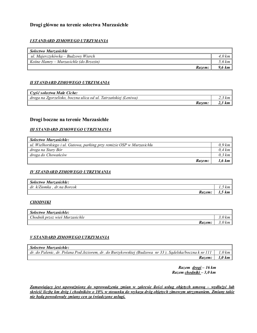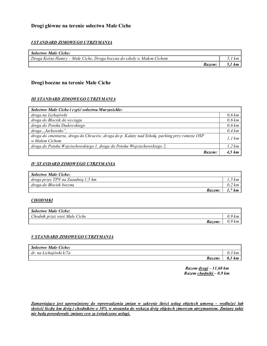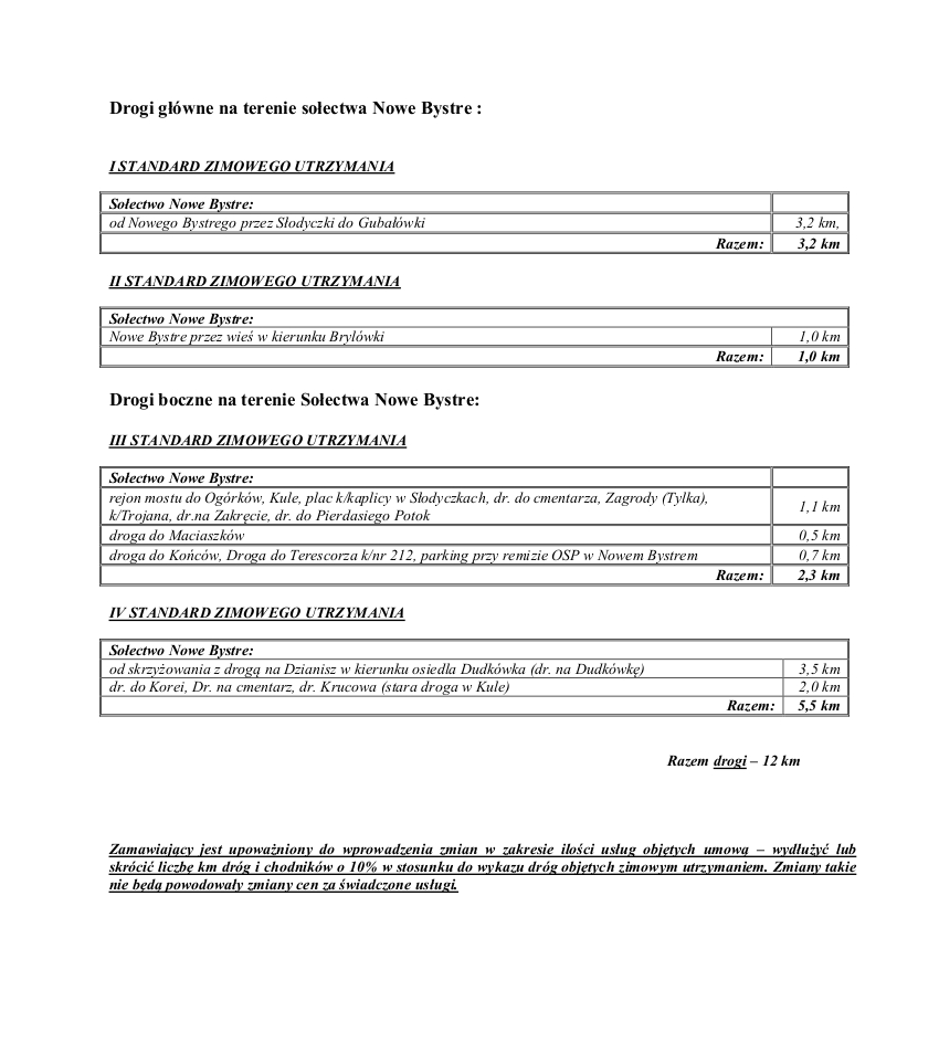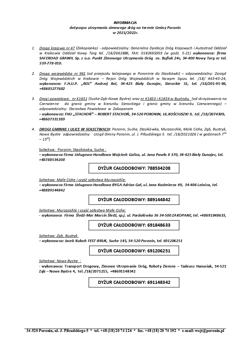 W związku ze zbliżającym się sezonem zimowym, a co za tym idzie czasem intensywnych opadów śniegu i utrudnionych warunków drogowych, informujemy, że będziemy dokładać wszelkich starań, aby zapewnić komfort i bezpieczeństwo użytkownikom dróg na terenie naszej Gminy. W tym celu przedstawiamy wykaz firm odpowiedzialnych za zimowe utrzymanie dróg.