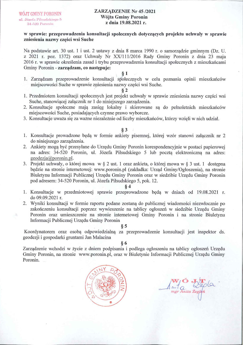 Konsultacje społeczne dotyczące uchwały w sprawie zniesienia nazwy części wsi Suche