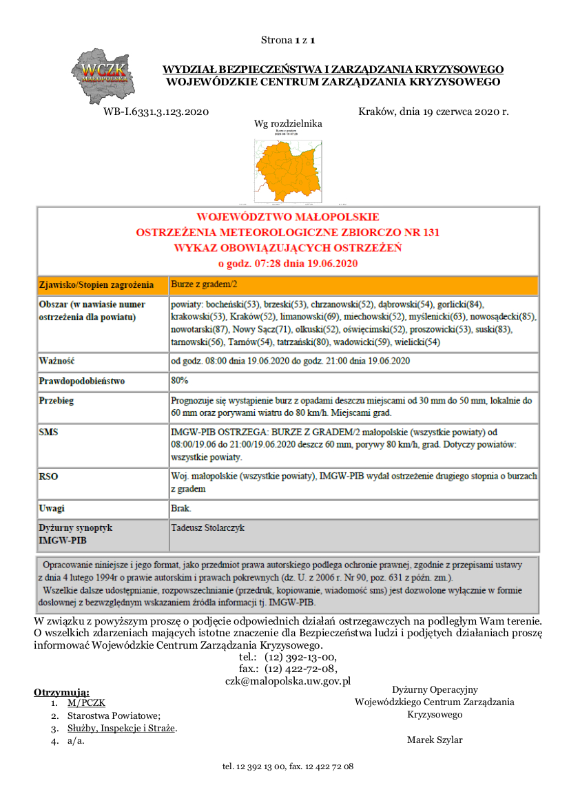Od godz. 08:00 dnia 19.06.2020 do godz. 21:00 dnia 19.06.2020