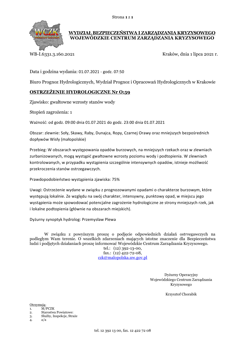 Od godz. 09:00 dnia 01.07.2021 do godz. 23:00 dnia 01.07.2021