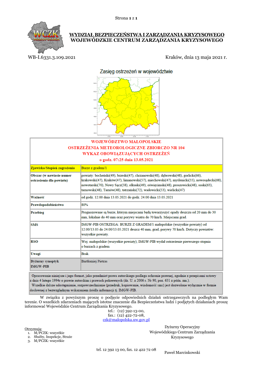 Od godz. 12:00 dnia 13.05.2021 do godz. 24:00 dnia 13.05.2021