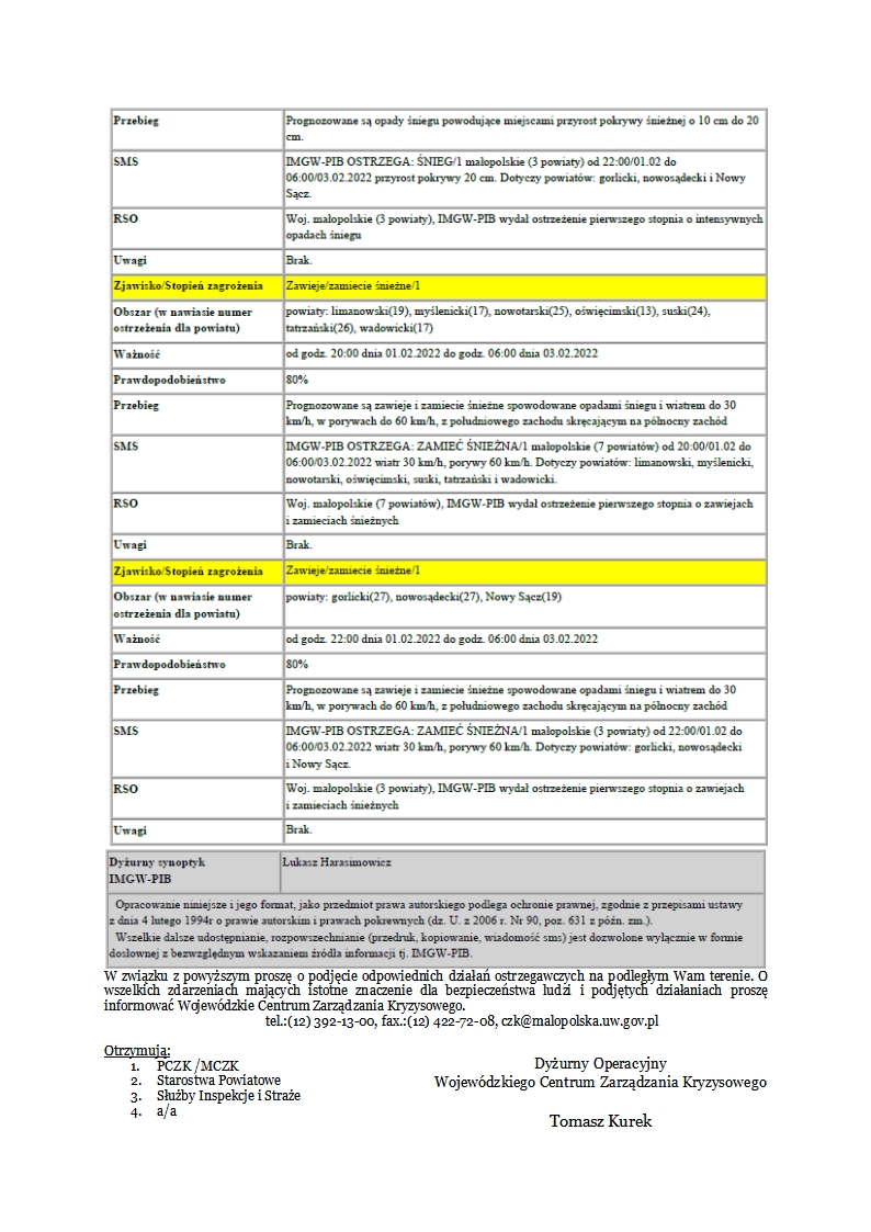 Od godz. 20:00 dnia 01.02.2022 do godz. 6:00 dnia 03.02.2022