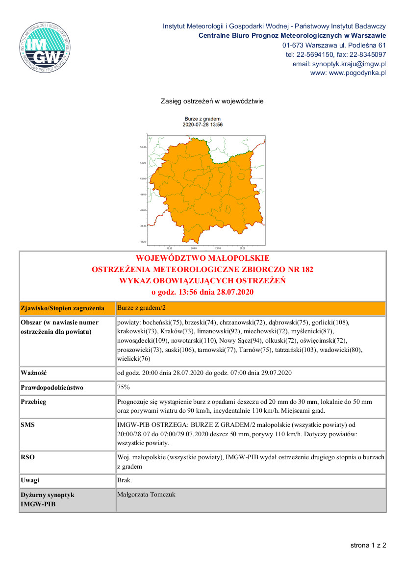 Od godz. 20:00 dnia 28.07.2020 do godz. 07:00 dnia 29.07.2020