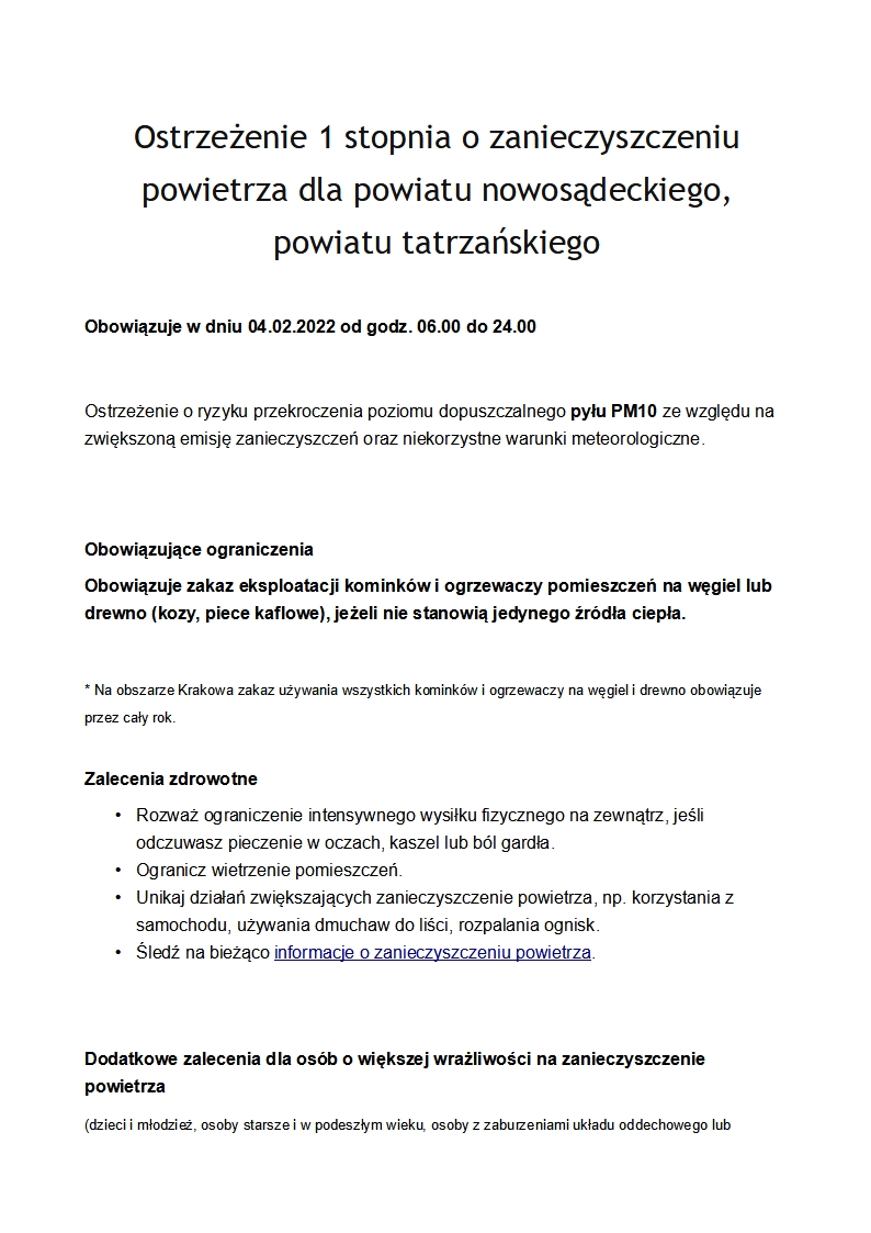 Obowiązuje w dniu 04.02.2022 od godz. 06.00 do 24.00