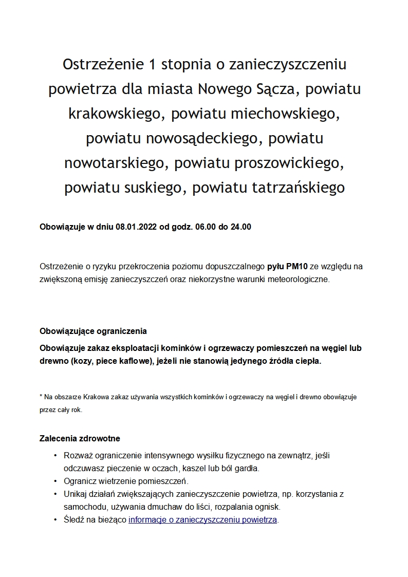 Obowiązuje w dniu 08.01.2022 od godz. 06.00 do 24.00