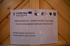 W dniu 22 i 23 czerwca 2018 r. odbyły się polsko - słowackie warsztaty z tradycyjnego rzemiosła w ramach mikroprojektu pn.” Gmina Poronin i Východná nie pozwolą zaginąć ludowym rzemiosłom”. W warsztatach uczestniczyli przedstawiciele Obec Východná.