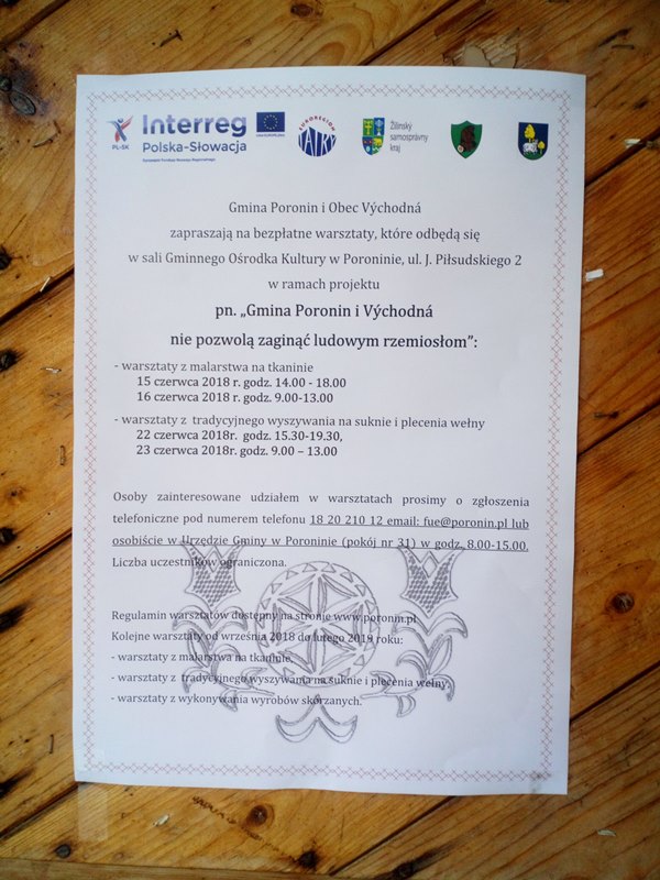 Realizacja projektu „Gmina Poronin i Obec Východná nie pozwolą zaginąć ludowym rzemiosłom” obejmie oddziaływaniem mieszkańców Polski i Słowacji, a także turystów odwiedzających region pogranicza.